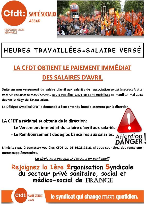 Cet article, publié dans ASSAD, est tagué assad; cfdt ;paiement des salaires; adhesion;syndicat;defendre. Ajoutez ce permalien à vos favoris.