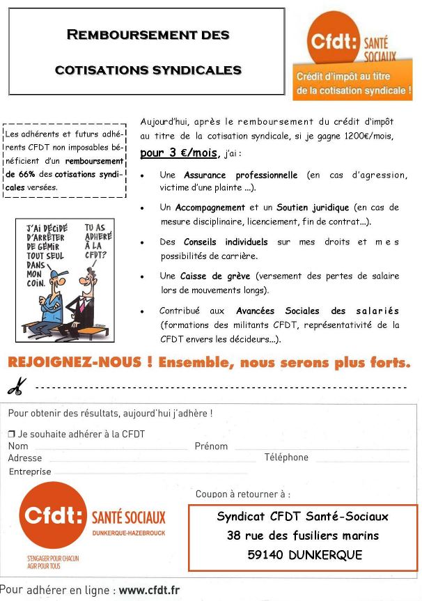 Cet article, publié dans Syndicalisation, est tagué adhesion, cfdt, cfdt;dunkerque;hazebrouck, santé sociaux. Ajoutez ce permalien à vos favoris.