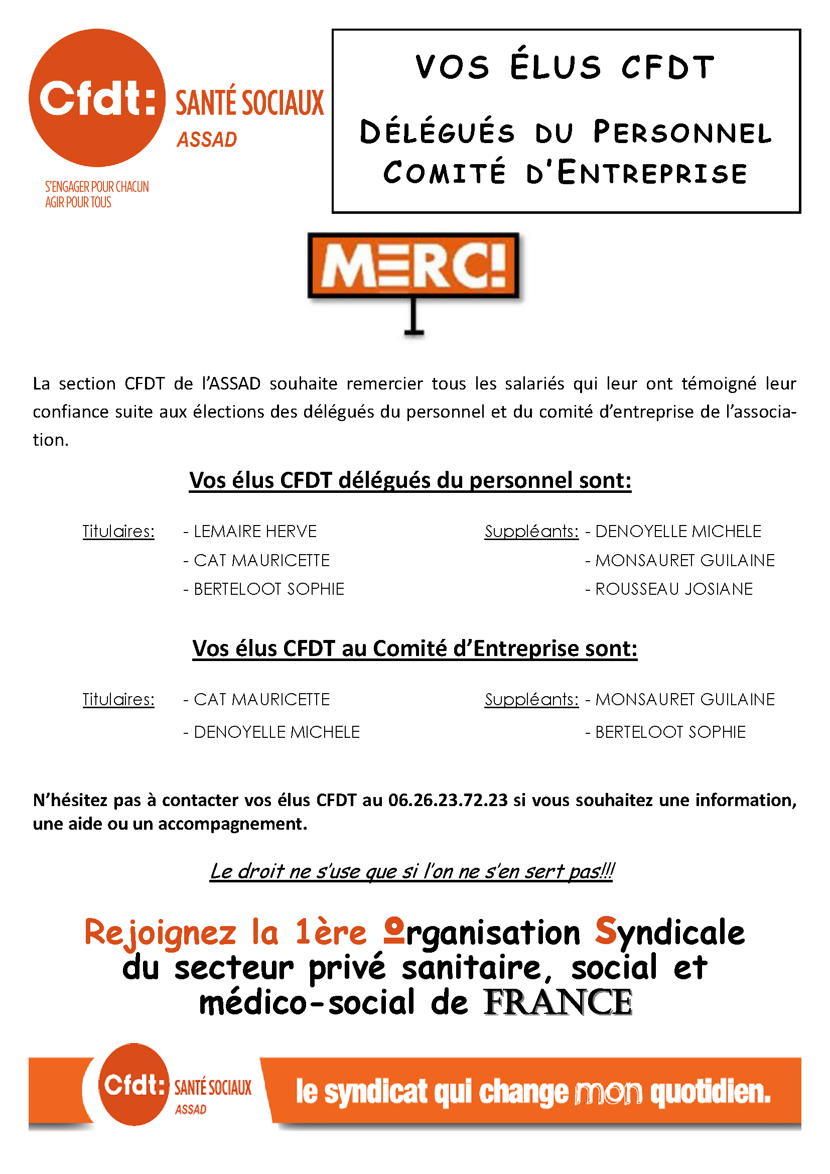 Félicitations pour les élu(e)s de L’ASSAD, et dans deux ans nous regagnerons les élections…