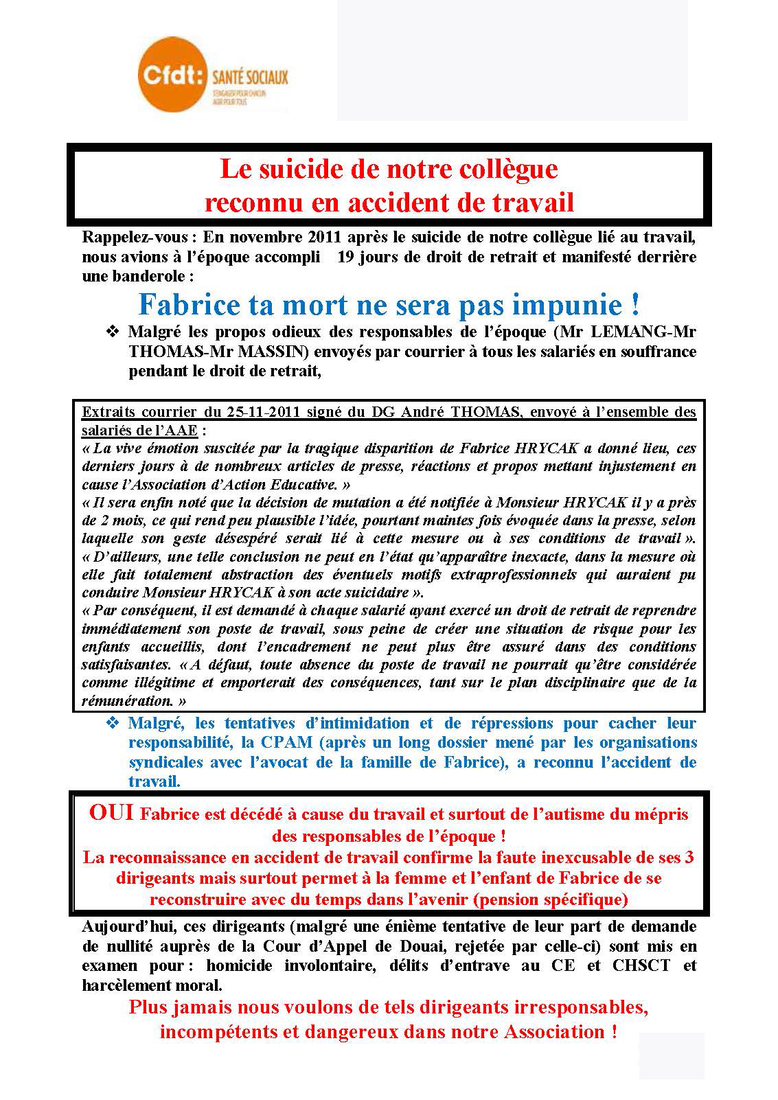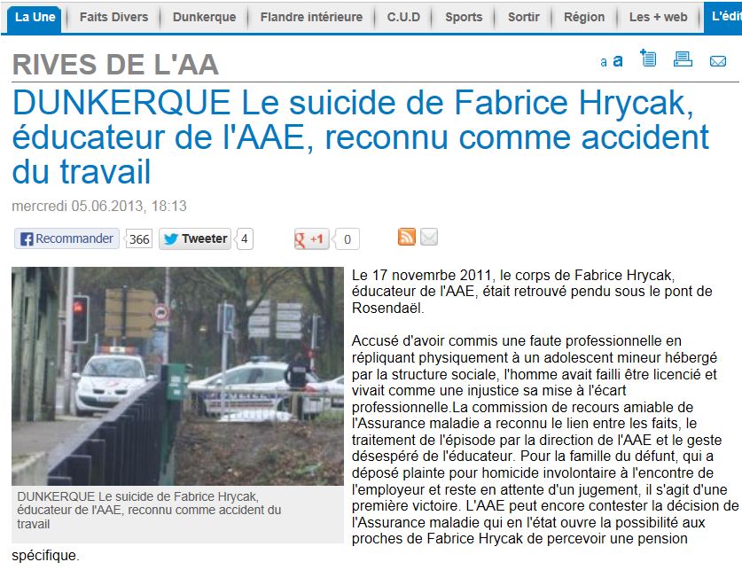 Le suicide d’un Educateur de l’AAE reconnu comme Accident de travail