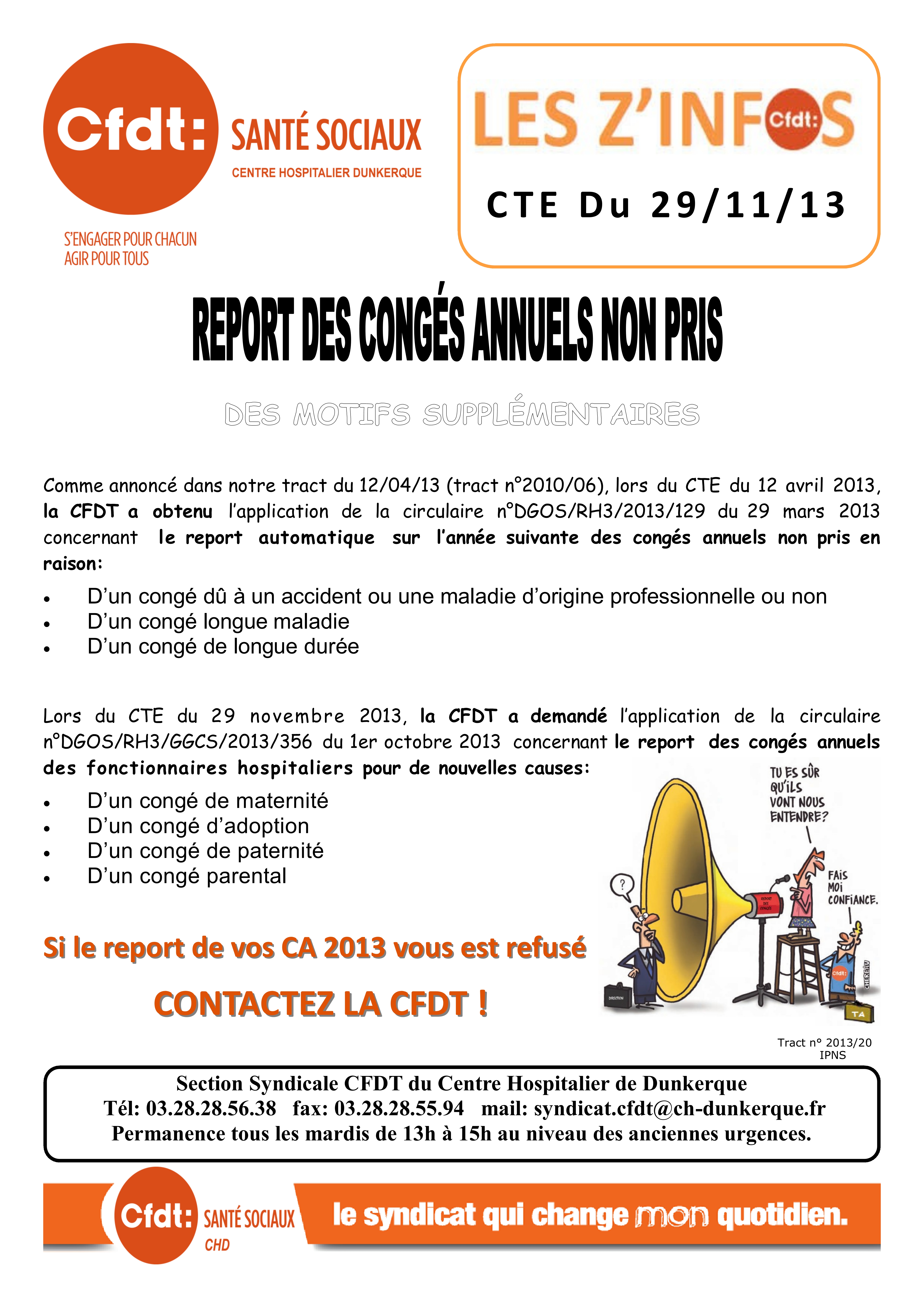 CHD: CTE du 29/11/13 Report des Congés Annuels non pris