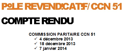 Vous trouverez, ci-joint, le compte rendu des commissions paritaires nationales des 4 et 18 décembre 2013 et du 7 janvier 2014 ainsi que les propositions CFDT pour rétablir un socle conventionnel.