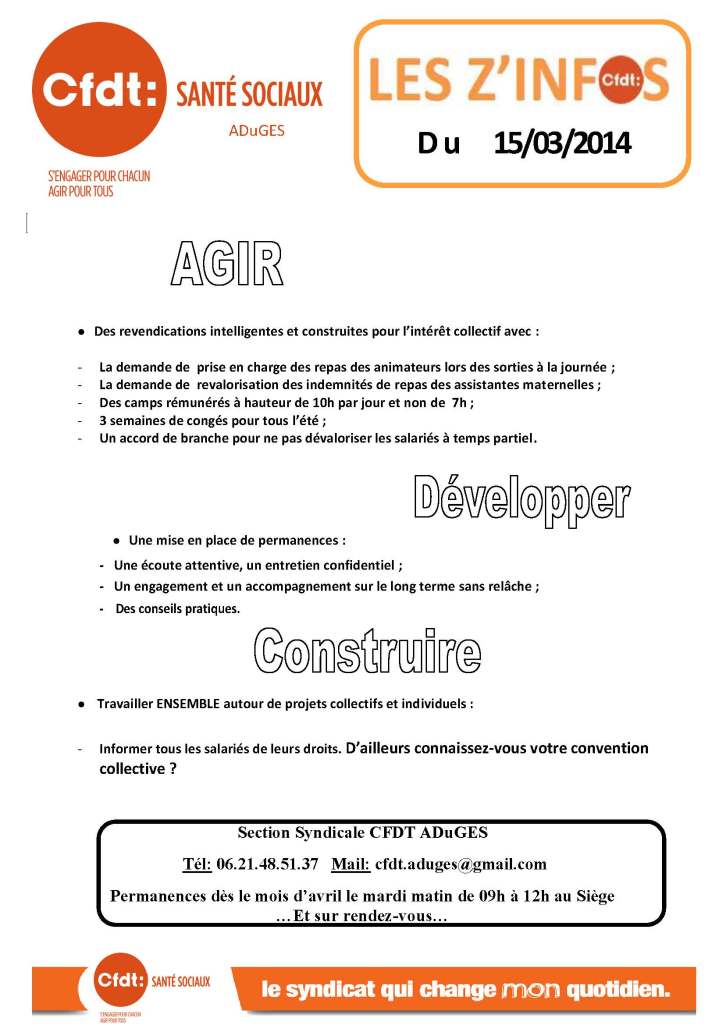 Les Z’infos du 15 Mars 2014 de la Section Aduges