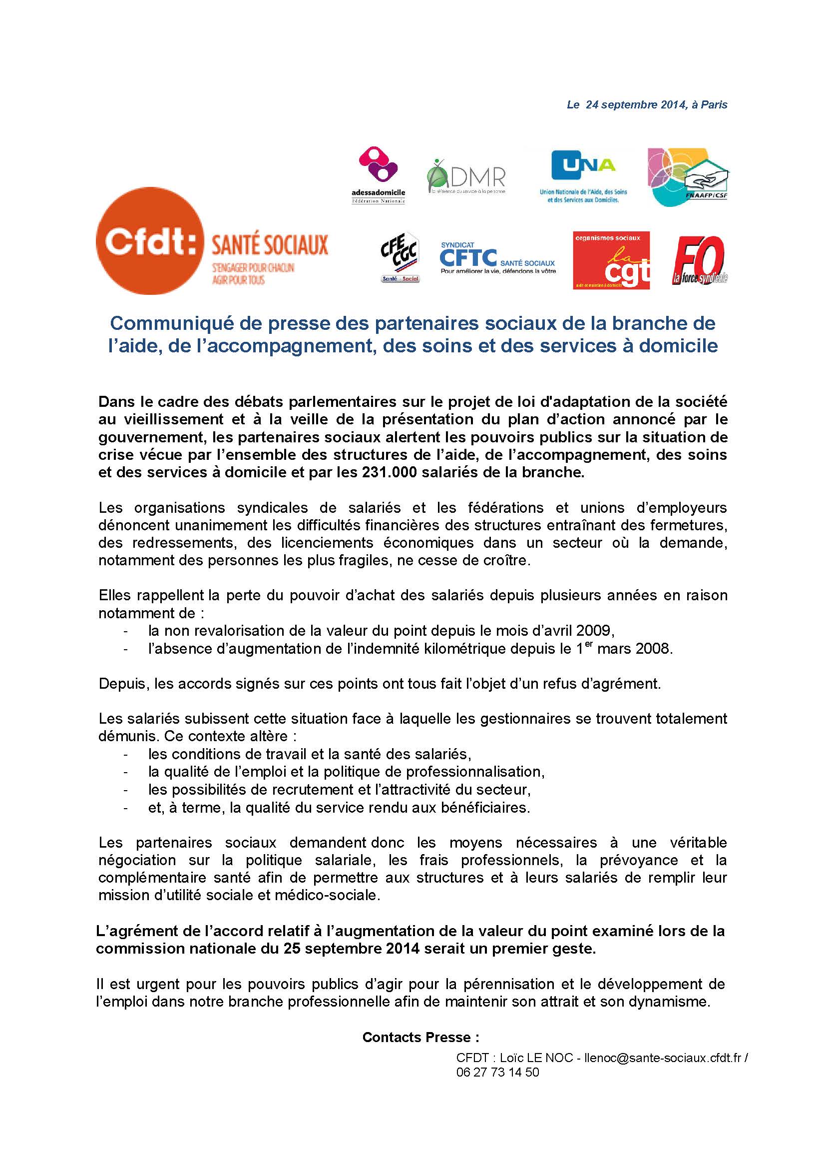 Communiqué de presse National sur la fragilité de notre métier des soins et des services à domicile