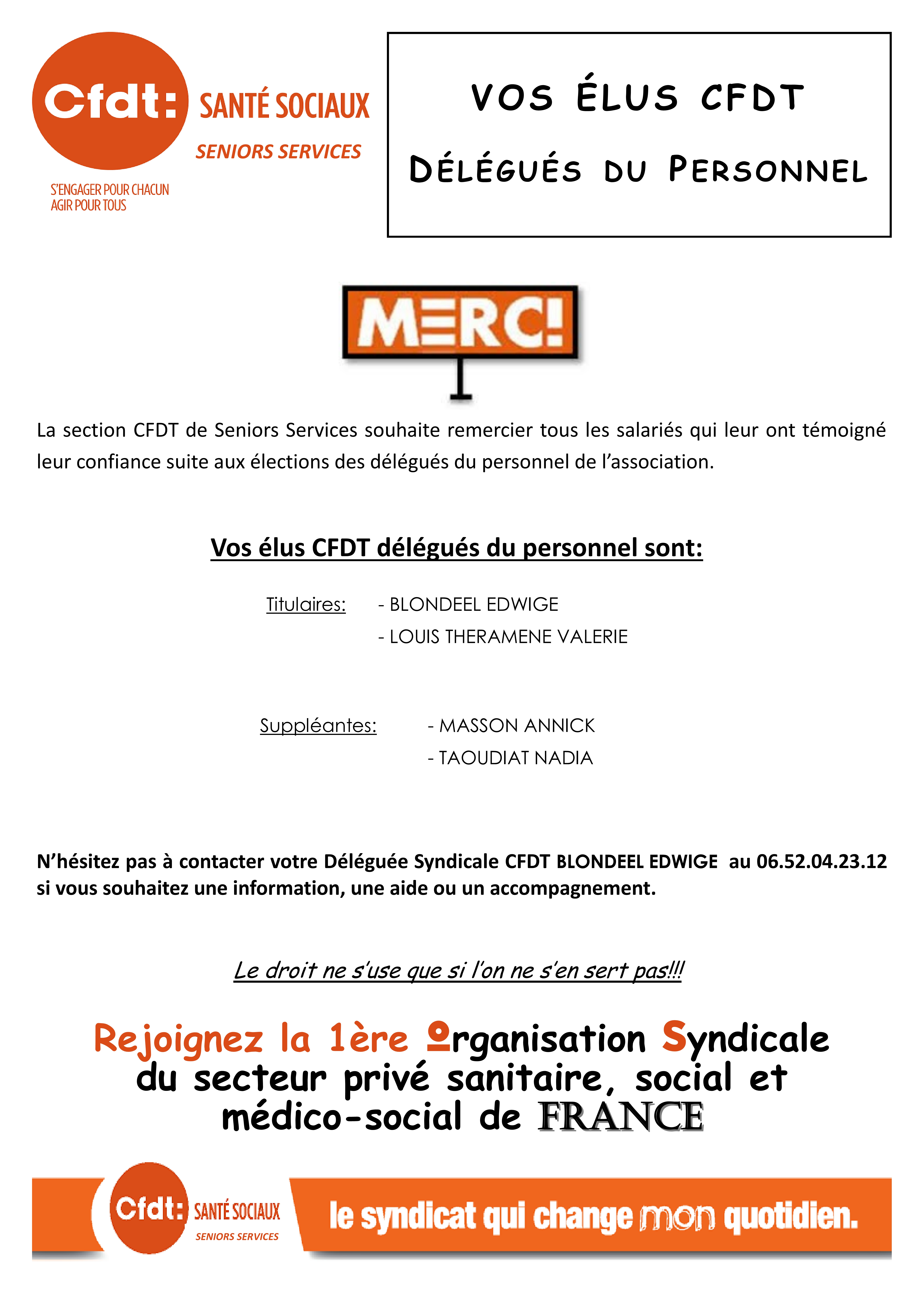 SENIORS SERVICES : Vos élus CFDT vous remercient