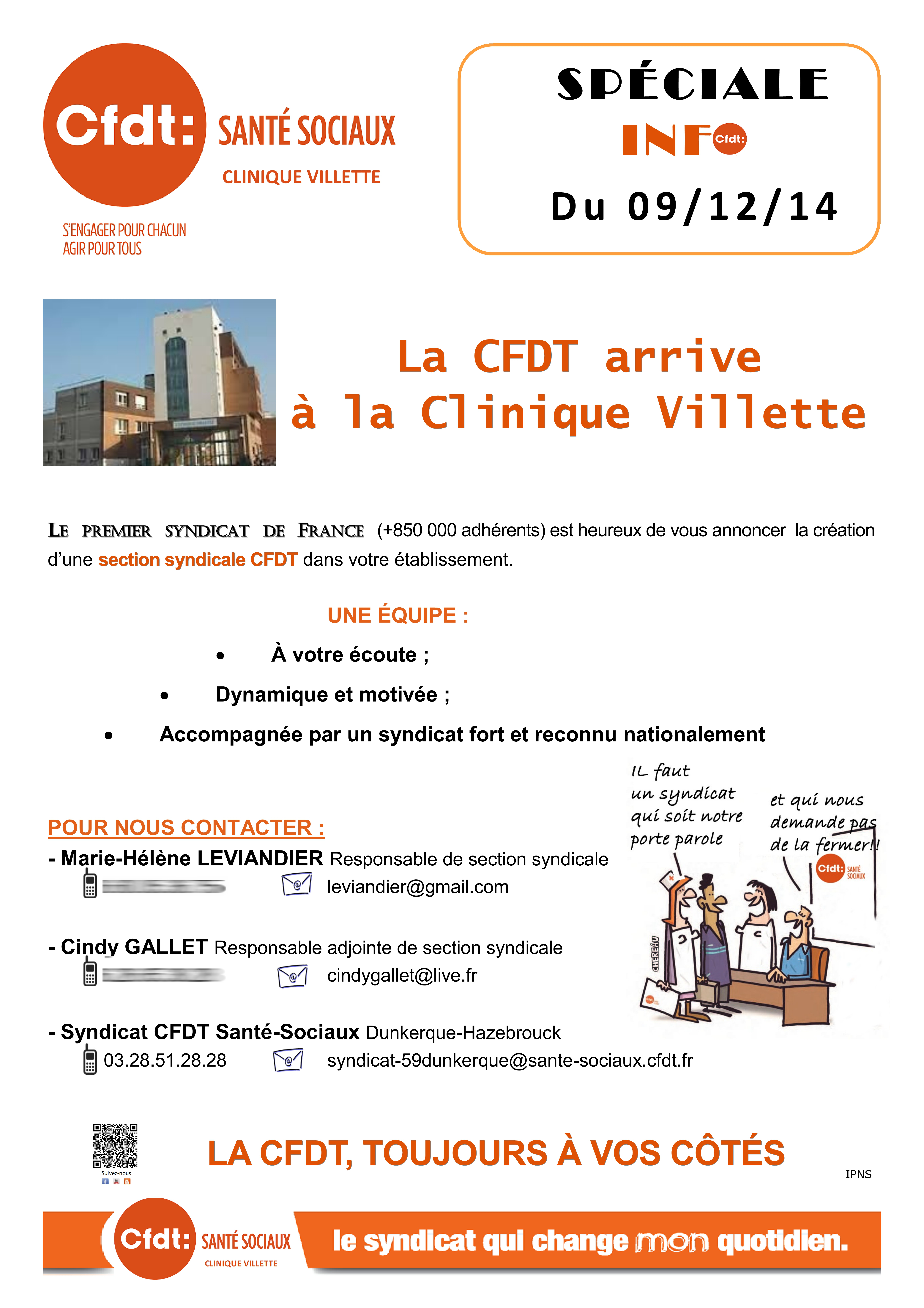 Une nouvelle section CFDT vient de se créer à la Clinique Villette de Dunkerque.