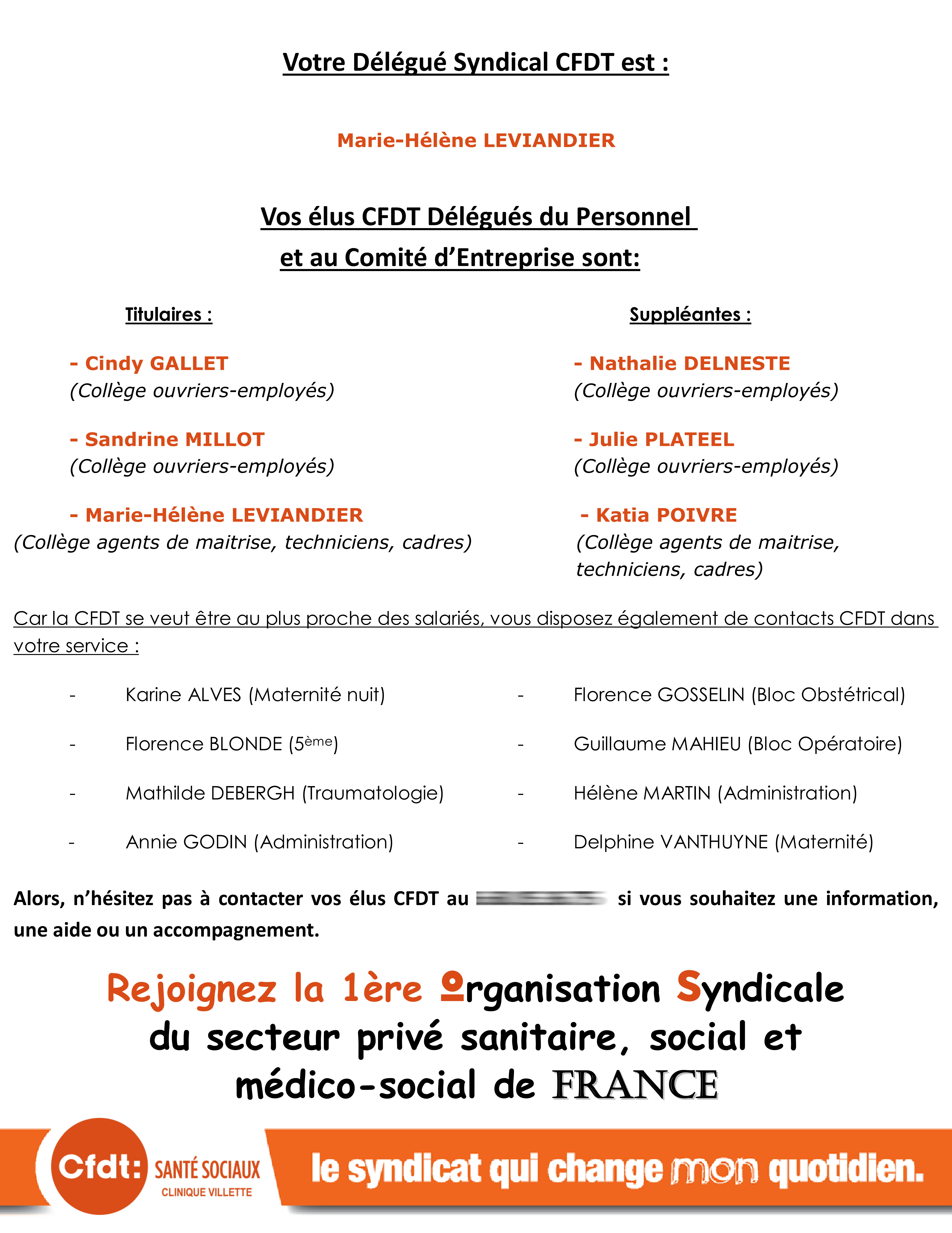 Ses premières élections viennent d’avoir lieu pour notre toute nouvelle section CFDT de la Clinique Villette.