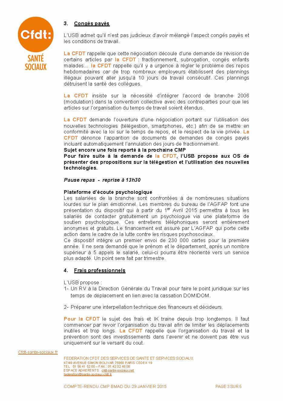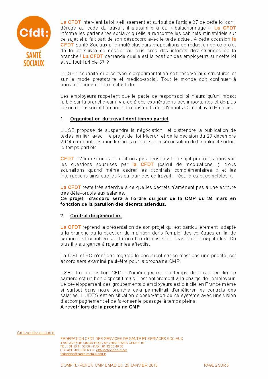 Vous trouverez, ci-joint : Le compte rendu de la dernière Commission mixte paritaire de branche de janvier. Les sujets abordés ayant des impacts croisés, il n’a pas été possible d’aboutir sur un seul sujet : temps partiel, congés ; déplacements et temps de travail