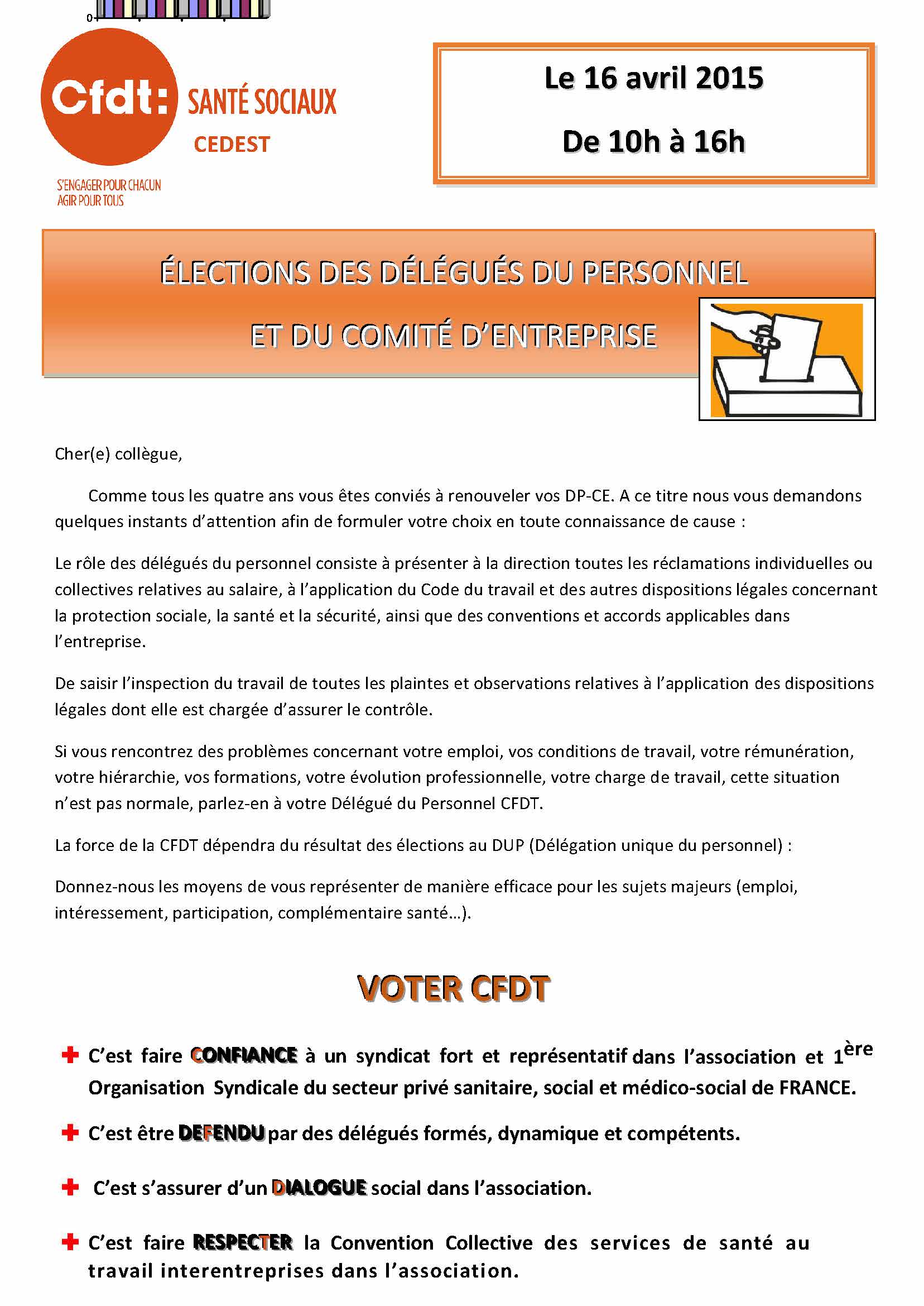 CEDEST : Elections professionnelles le Jeudi 16 Avril 2015