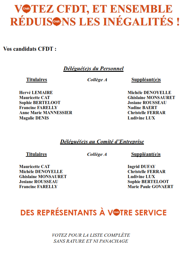 Parce-que la CFDT ne délaisse aucun salarié, la section CFDT de l’ASSAD présente aussi une candidature dans le collège B (Responsable de Secteur, Infirmière, Comptable…)