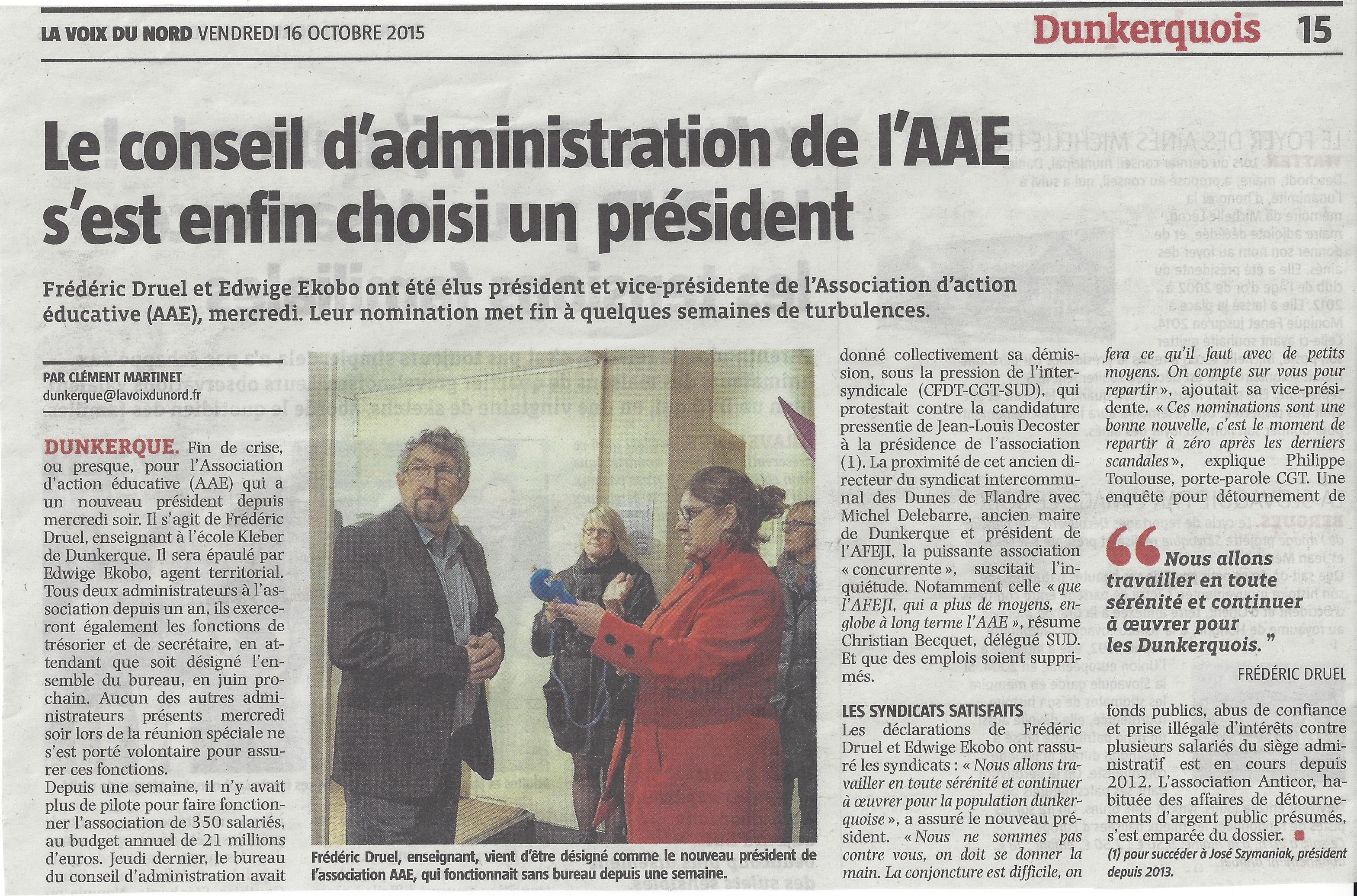 Trouvez ci-dessous un article du Journal « La Voix du Nord » du Vendredi 16 Octobre 2015 concernant l’association l’AAE à Dunkerque.