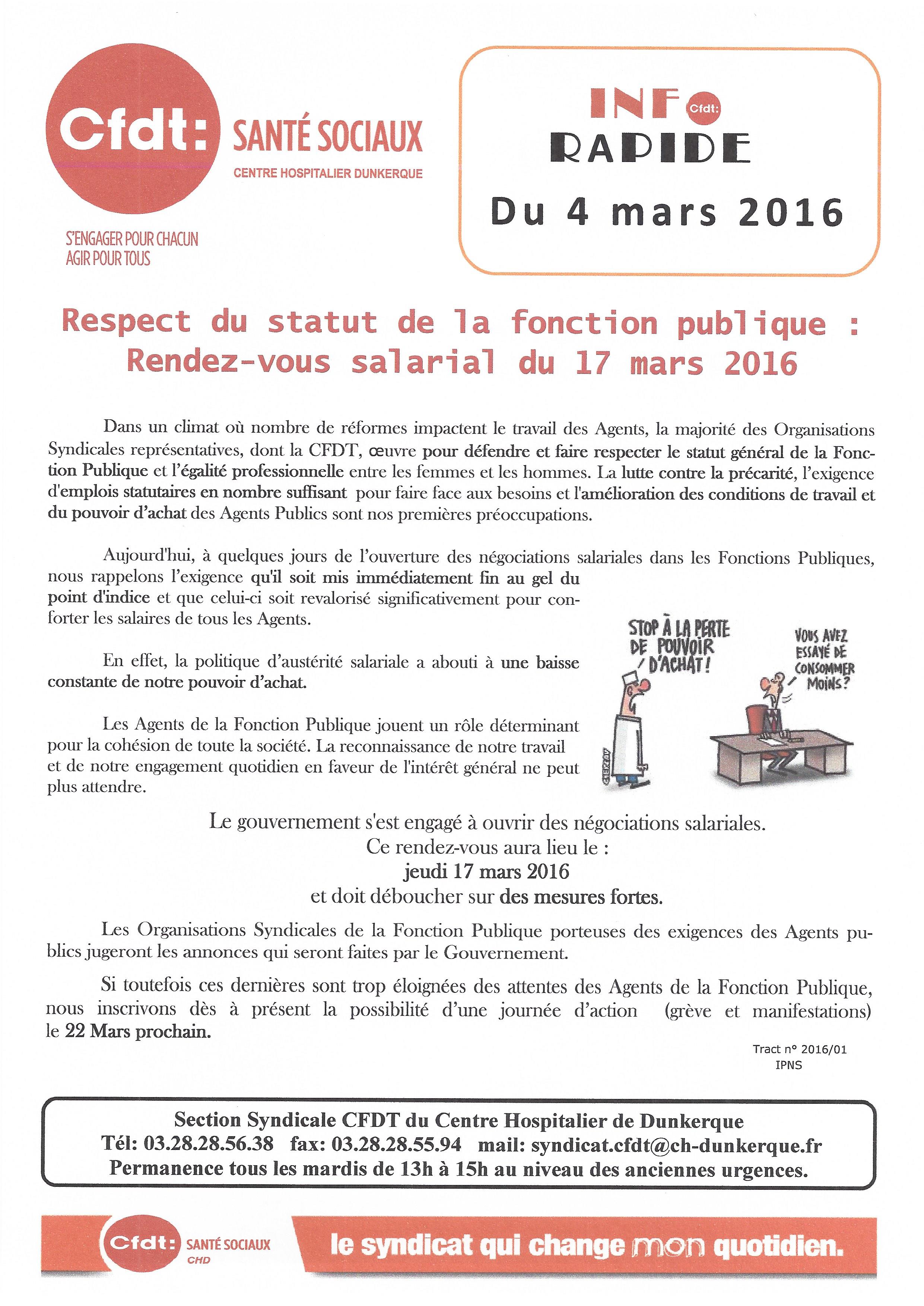 CHD : Respect du statut de la fonction publique – Rendez-vous salarial du 17 mars 2016