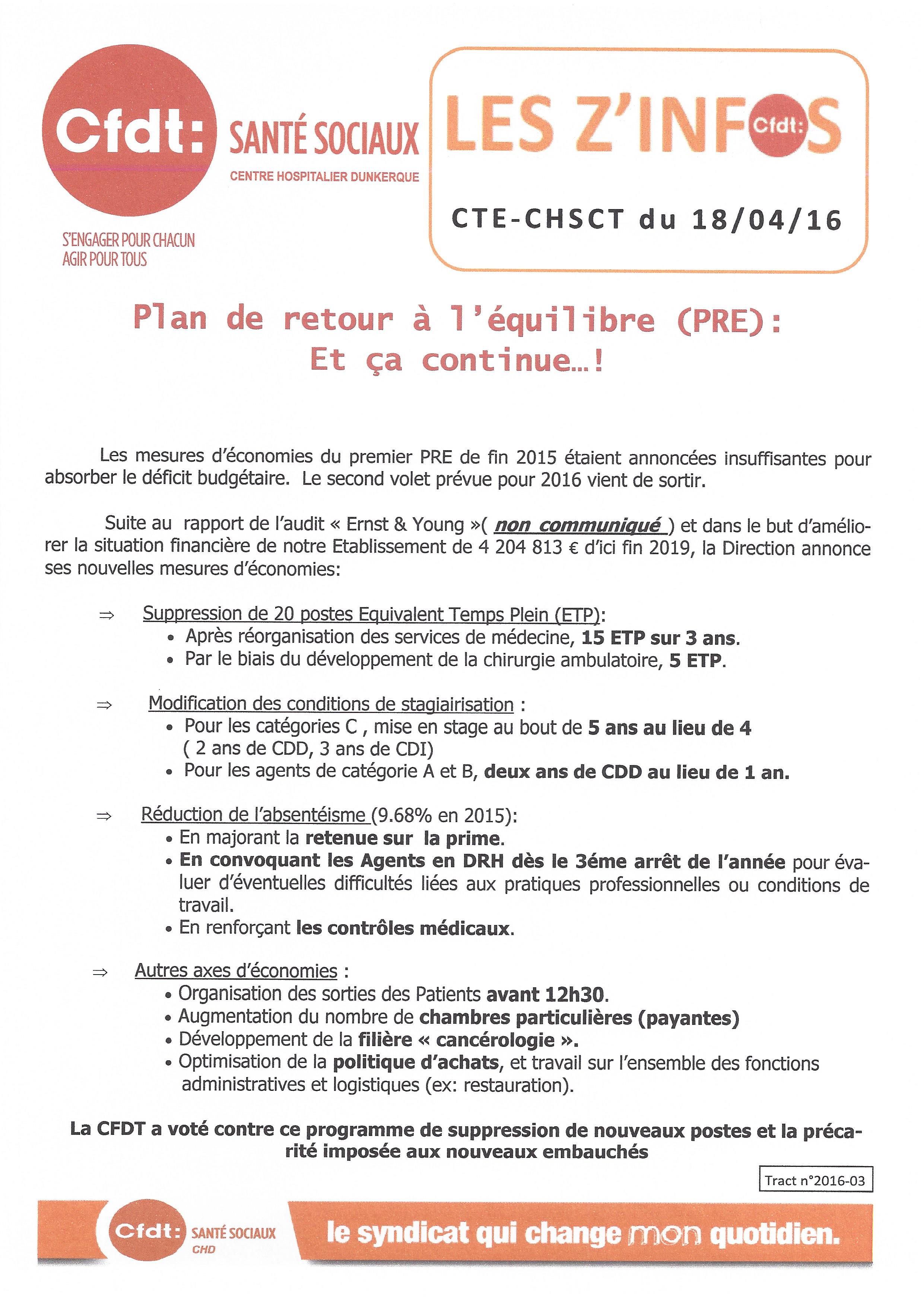 CHD : Plan de retour à l’équilibre (PRE) : Et ça continue… !!!