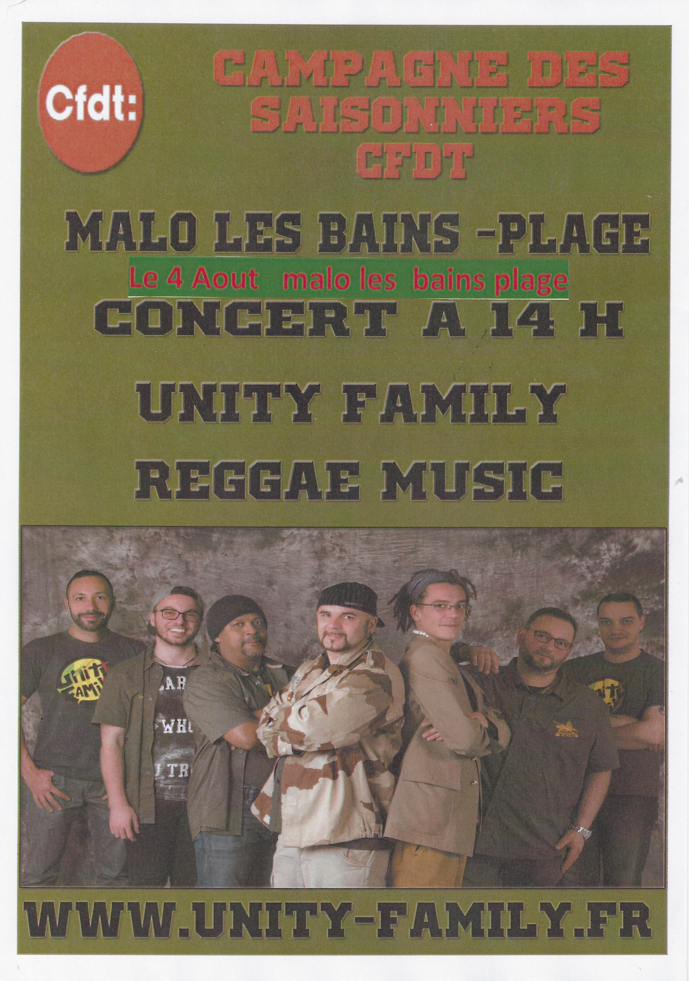 Une animation sera assurée par un groupe » UNITY FAMILY – REGGAE MUSIC » de 14 H 00 à 16 H 00.