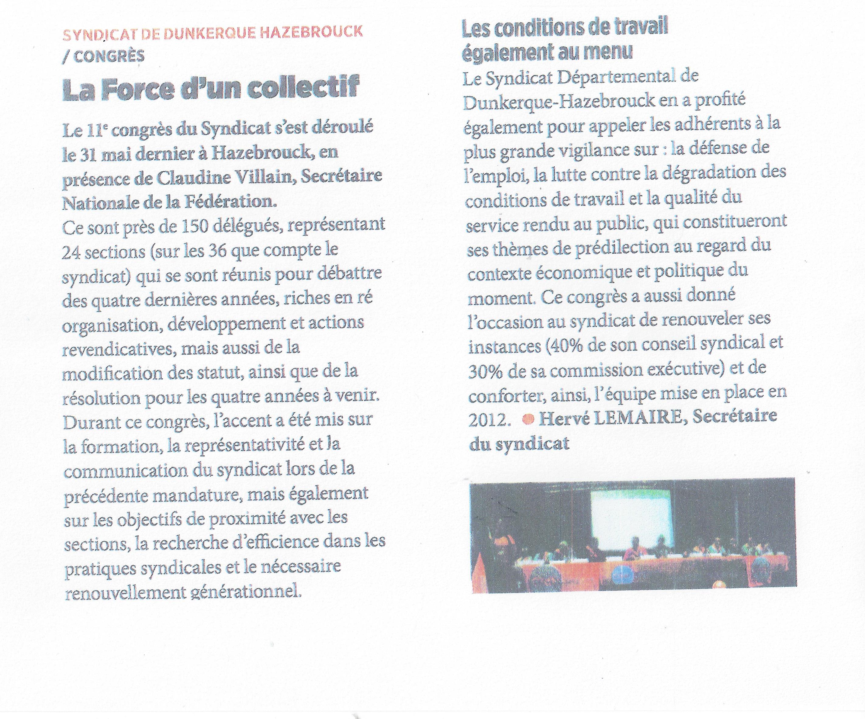 Trouvez ci-dessous un article du Journal « MULTIPLE» de Juillet-Août 2016 concernant notre 11ème Congrès du syndicat Départemental CFDT des Services de Santé et des Services Sociaux de DUNKERQUE/HAZEBROUCK.