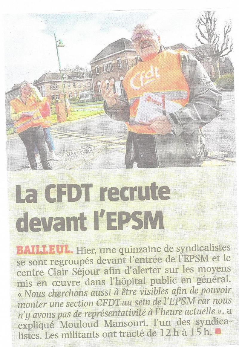 Trouvez ci-dessous un article du Journal « La Voix du Nord » du Mercredi 05 Avril 2017 concernant l’action du Mardi 04 Avril 2017 à EPSM des Flandres à Bailleul du Syndicat CFDT Départemental des Services de Santé et des Services Sociaux de DUNKERQUE-HAZEBROUCK.