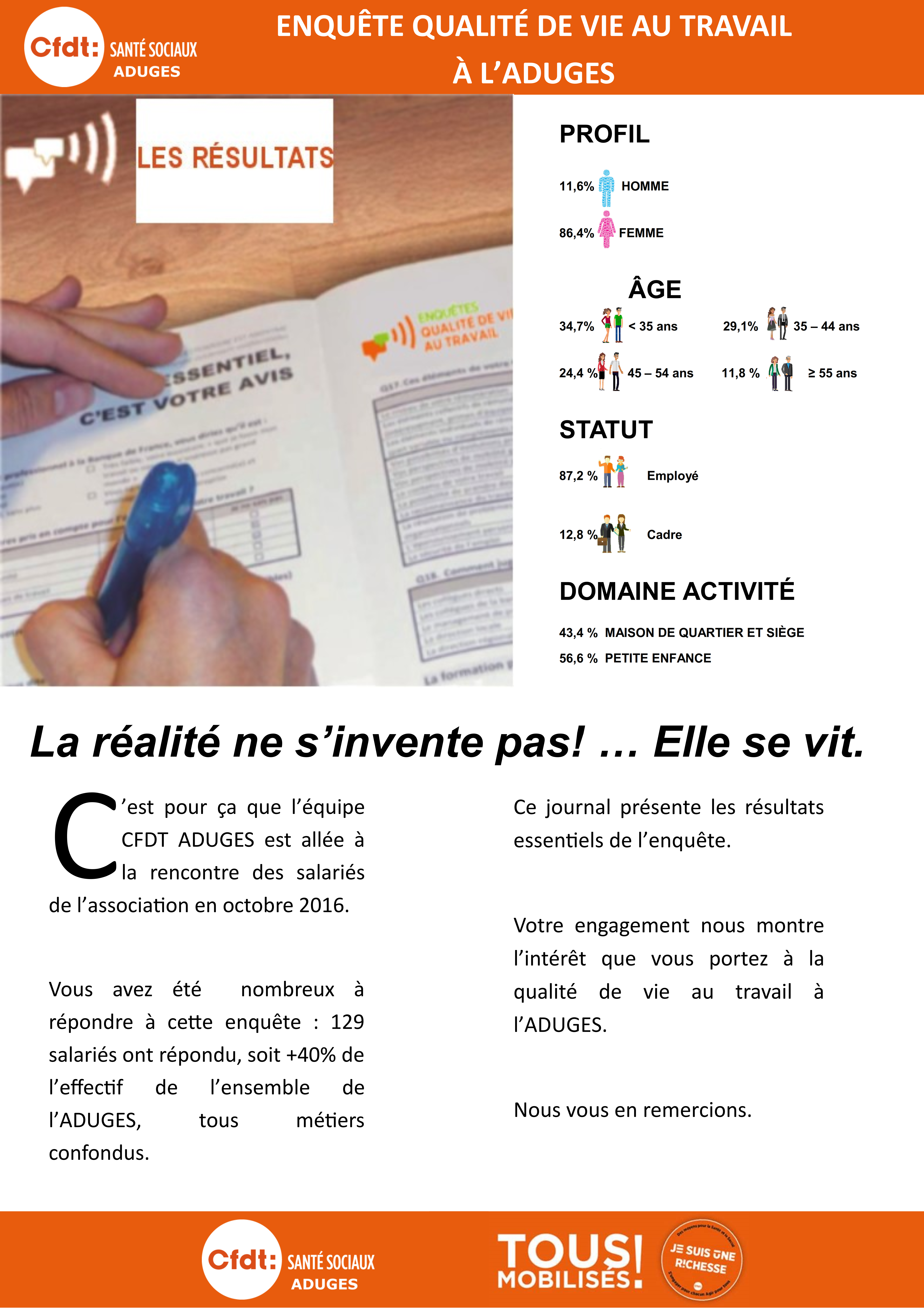 CFDT de l’ADUGES a réalisé une vaste enquête sur la Qualité de Vie au Travail dans l’association.