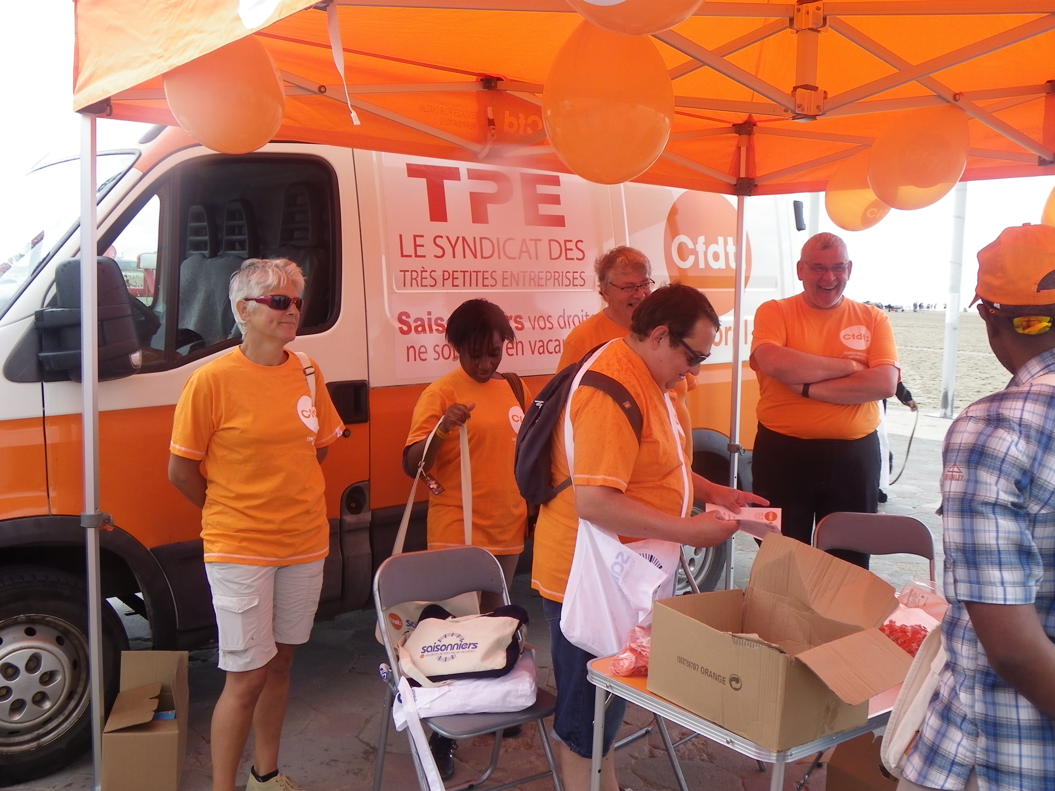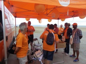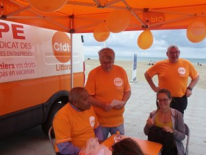 Campagne des saisonniers le jeudi 20 Juillet 2017 (plage de Malo-les-Bains, rotonde du casino à Dunkerque) en présence d’Inès de la Confédération et de Pascal Secrétaire Général de URI Nord/Pas de Calais.