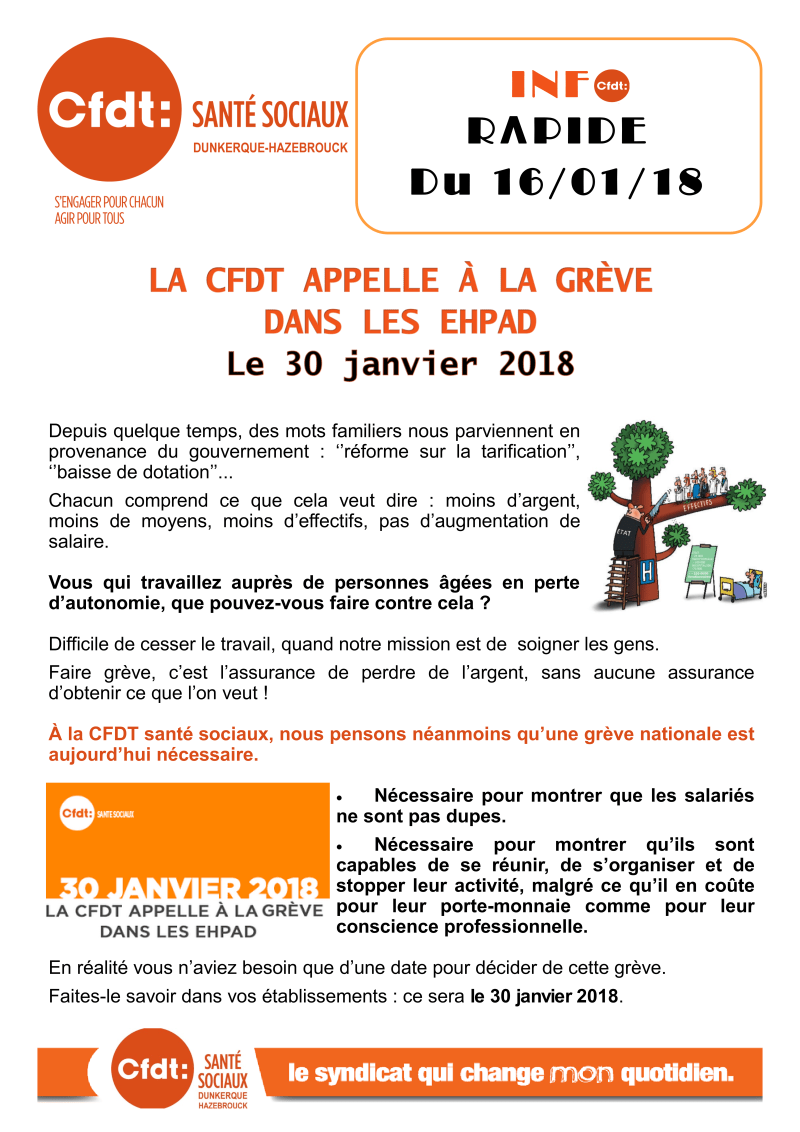 FPH : Grève dans les EHPAD le 30 Janvier 2018