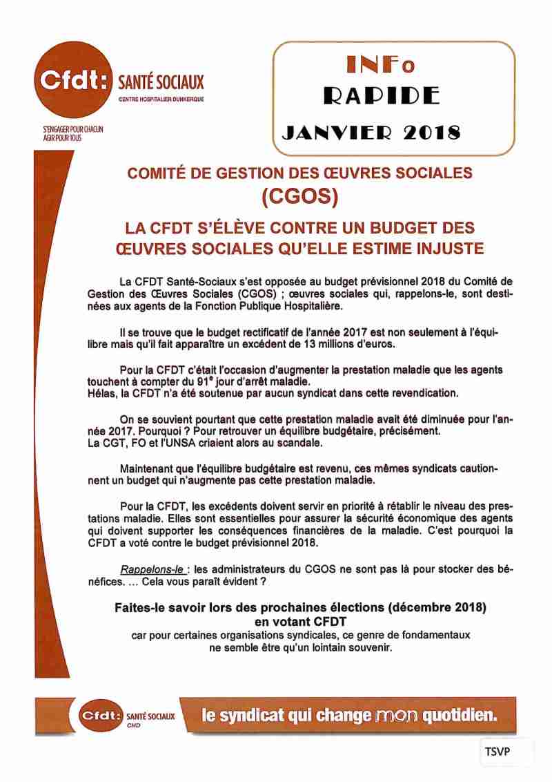 CHD : La CFDT S’ÉLÈVE CONTRE UN BUDGET DES ŒUVRES SOCIALES QU’ELLE ESTIME INJUSTE !!!