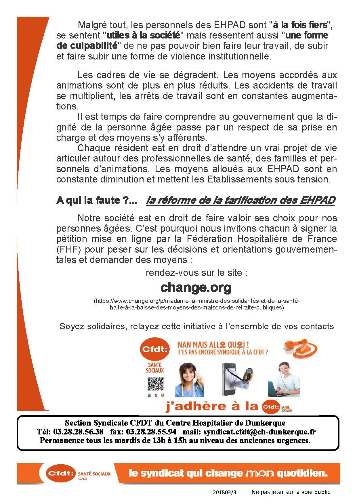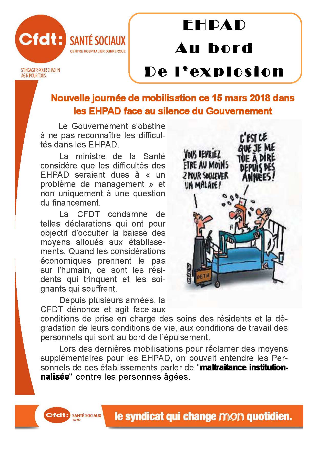 L’équipe syndicale CFDT de la section du CHD à la rencontre des Personnels des Charmilles, des Résidents et leur Famille ce jeudi 15 mars 2018.