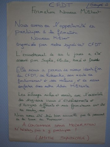Le Syndicat Départemental des Services de Santé et des Services Sociaux Dunkerque-Hazebrouck à organisé une Formation de base Accueil du Nouveau Militant au centre de loisirs du Puythouck à Grande-Synthe.