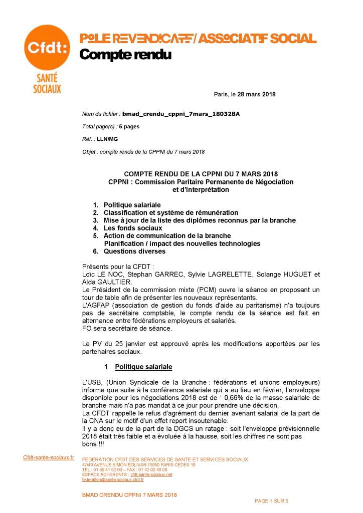Veuillez trouver ci-dessous le Compte Rendu de la Commission Paritaire Permanente de Négociation et d’Interprétation du Mercredi 07 Mars 2018.