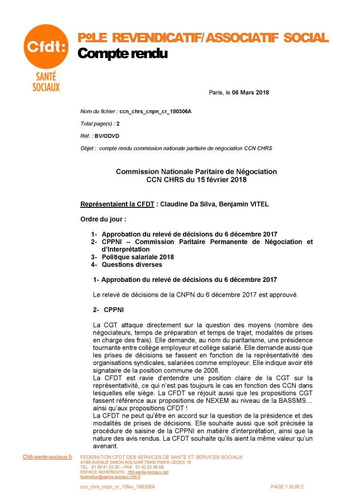 Vous trouverez ci-dessous (en cliquant sur l’image) le compte-rendu de la Commission Nationale Paritaire de Négociation du jeudi 15 février 2018 A l’ordre du jour : Politique Salariale 2018 et Mise en place de la CPPNI.