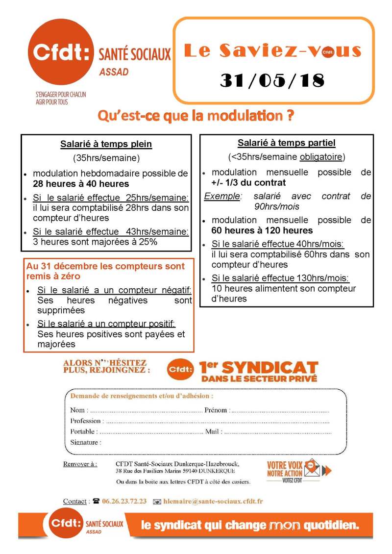 ♦ N’hésitez pas à contacter vos élus CFDT au 06.26.23.72.23 ou hlemaire@sante-sociaux.cfdt.fr si vous souhaitez une information, une aide ou un accompagnement…