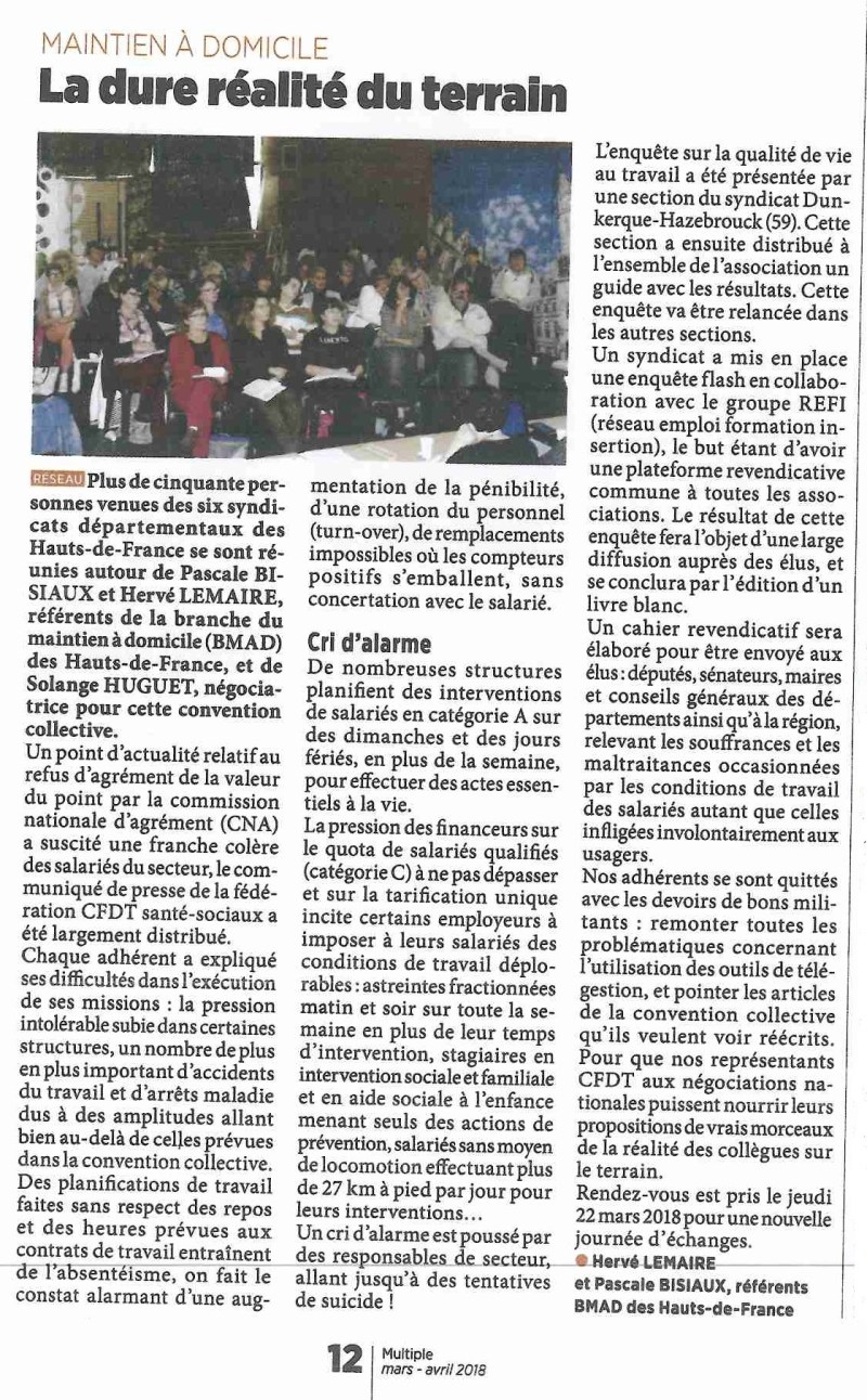 Trouvez ci-dessous un article du Journal « MULTIPLE» de Mars-Avril 2018 concernant une réunion de branche du Maintien à Domicile dans le cadre de UPR pour la région Hauts de France à ARRAS.