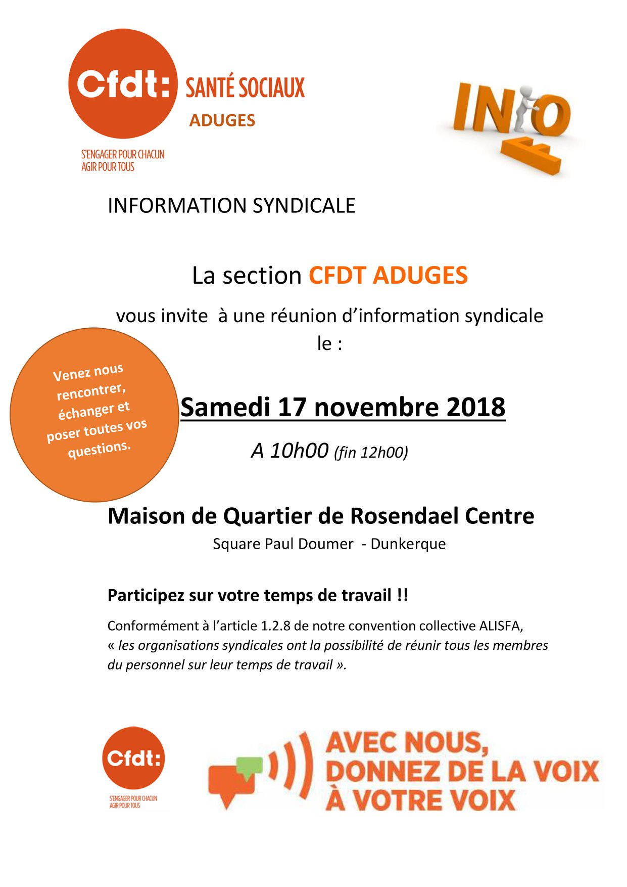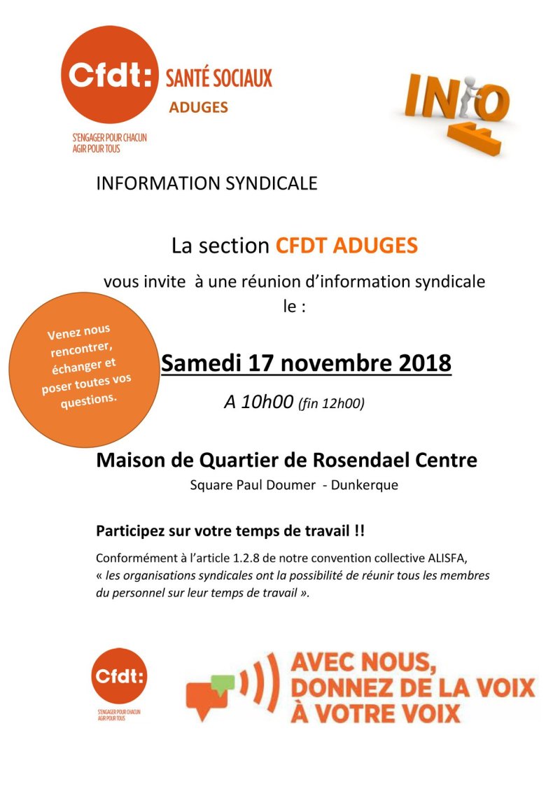 ADUGES : RÉUNION D’INFORMATION SYNDICALE LE SAMEDI 17 NOVEMBRE 2018
