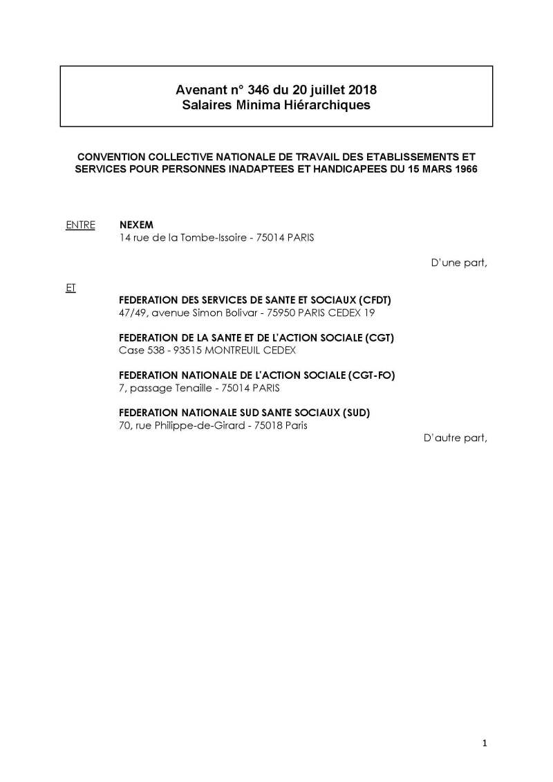 Vous trouverez ci-dessous « en cliquant sur l’image » l’avenant N° 346 du 20 juillet 2018 – Salaire Minima Hiérarchiques agréés dans la CCN 66 en 2018.