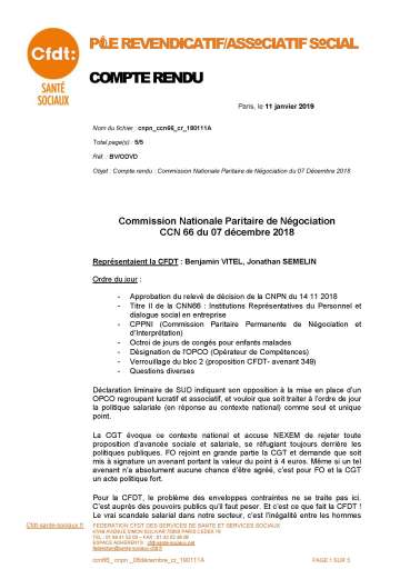 Vous trouverez ci-dessous « en cliquant sur l’image » le compte-rendu de la CNPN CCN 66 du vendredi 07 décembre 2018.