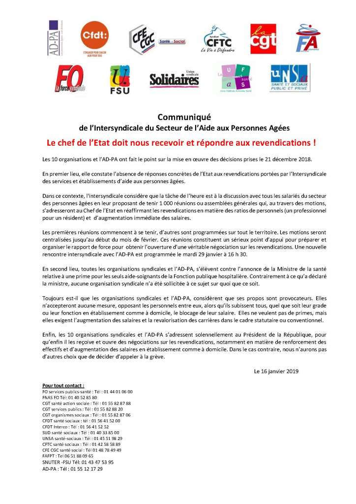 Vous trouverez, ci-dessous, un communiqué de presse concernant le mouvement intersyndical des services et établissements d’aide aux personnes âgées. Une information complémentaire sera diffusée très prochainement reprenant les positions fédérales concernant, notamment, l’organisation des assemblées générales et la prime spécifique pour les aides-soignantes.