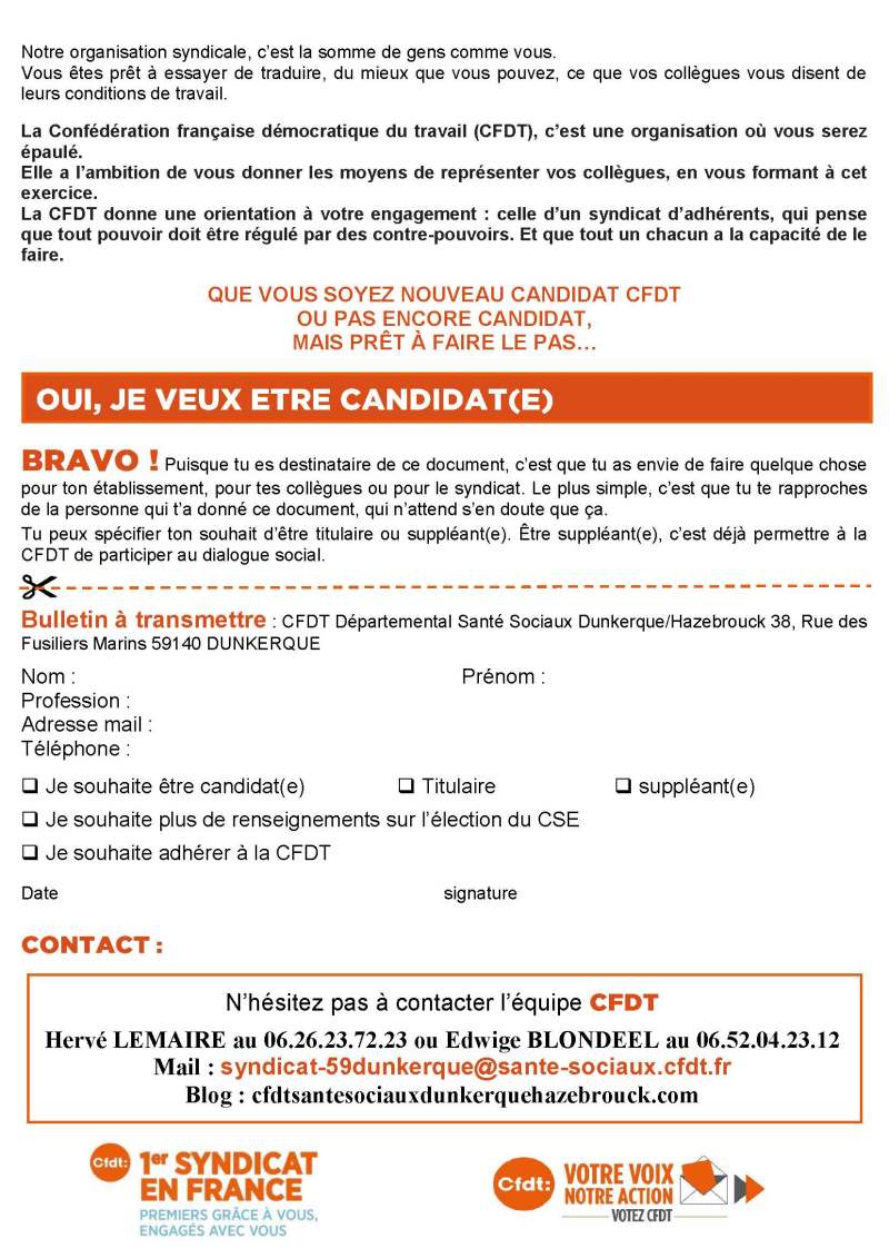 En vue des élections au Comité Social et Economique prévu le Jeudi 25 Avril 2019 de 8h30 à 18h00, la Section CFDT a transmis un tract.