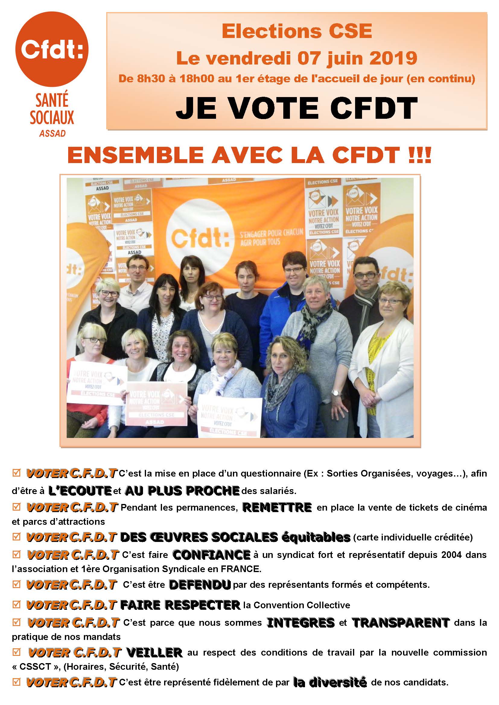 En vue des élections professionnelles prévu le Vendredi 07 Juin 2019, la Section CFDT a été à la rencontre des salariés de L’ASSAD le 29 Mai et 31 mai 2019 pour les informer en leur distribuant un tract sur leur campagne électoral.