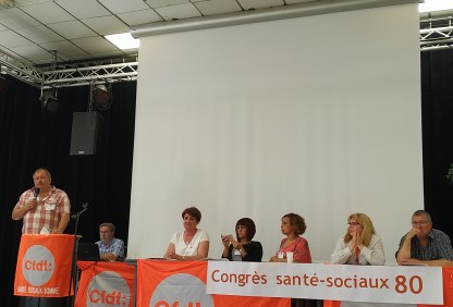 Le Secrétaire Général M. Hervé LEMAIRE et le Délégué Syndical de Temps Vie St Victor M. David FLESCH du Syndicat CFDT Départemental des Services de Santé et des Services Sociaux de Dunkerque-Hazebrouck au Congrès du Syndicat Santé Sociaux de la Somme à Montdidier, le mardi 18 juin 2019.
