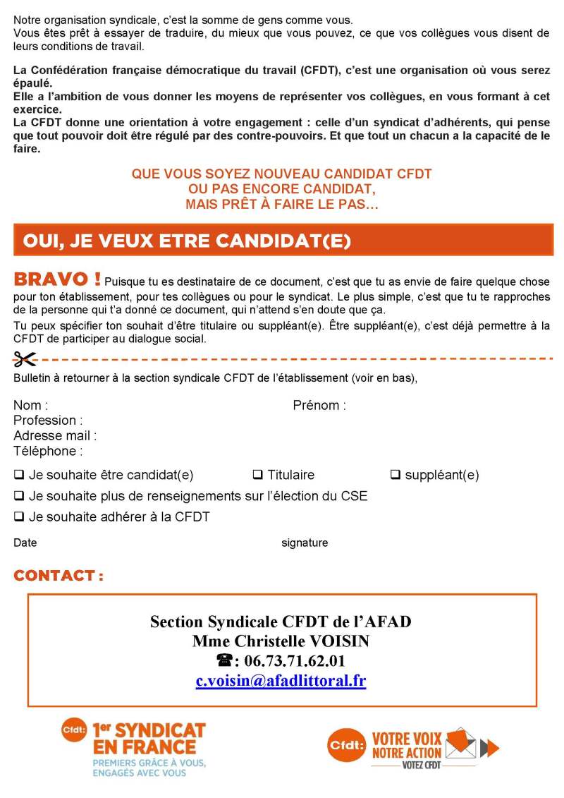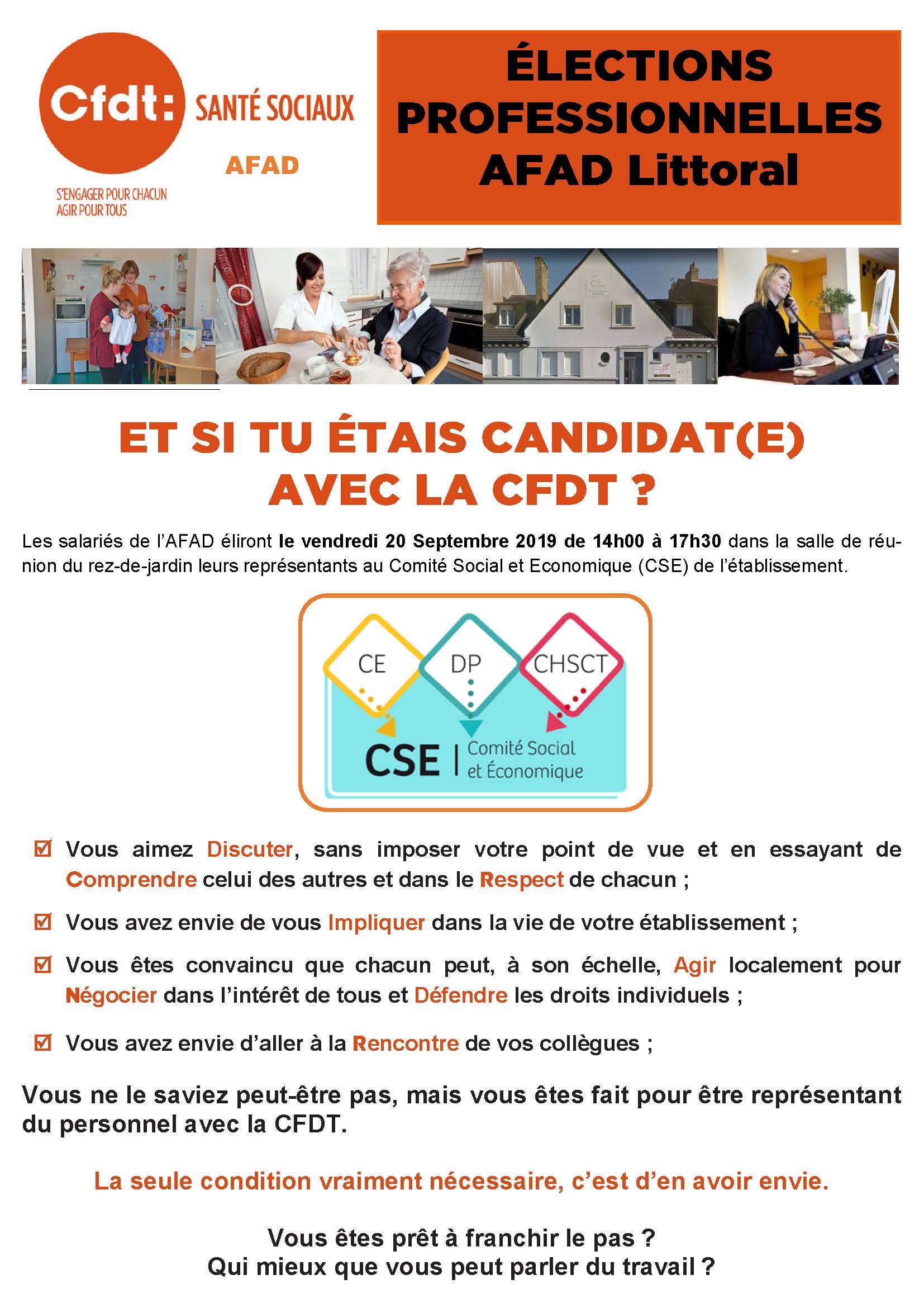 Les salariés de l’AFAD éliront le vendredi 20 Septembre 2019 de 14h00 à 17h30 dans la salle de réunion du rez-de-jardin leurs représentants au Comité Social et Economique (CSE) de l’établissement.