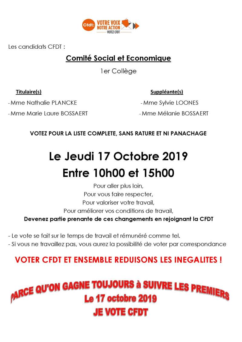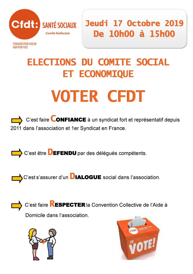 Cet article, publié dans Comité Bailleulois, est tagué CFDT Départemental Santé sociaux Dunkerque Hazebrouck, Comité Bailleulois, CSE, elections professionnelle. Ajoutez ce permalien à vos favoris.