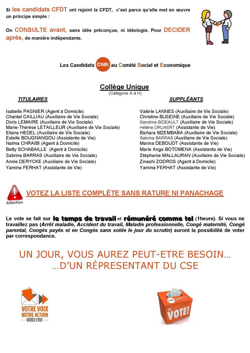 ADAR Flandre Maritime : Elections CSE du lundi 04 novembre 2019 – ENSEMBLE AVEC LA CFDT !!!