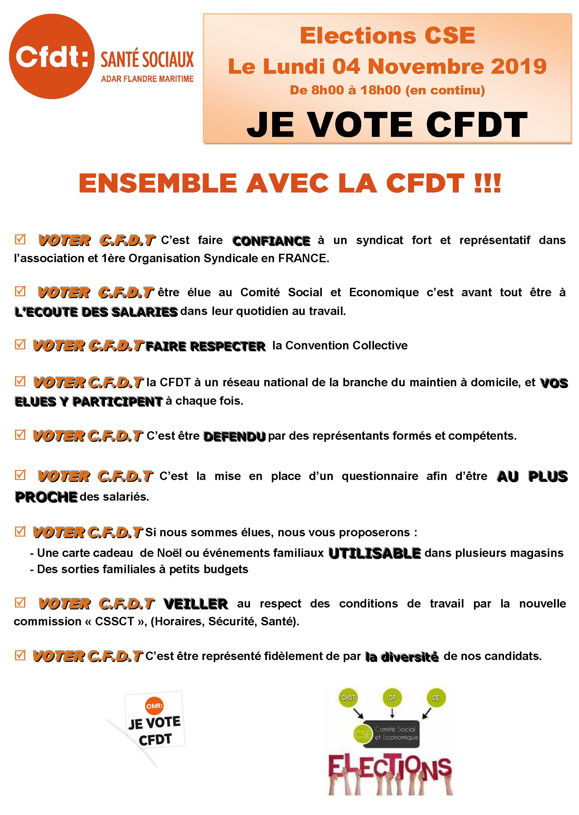 ADAR Flandre Maritime : Elections CSE du lundi 04 novembre 2019 – ENSEMBLE AVEC LA CFDT !!!
