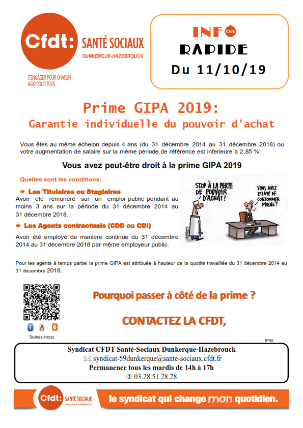 Cet article, publié dans Fonction Publique Hospitalière, est tagué CFDT Départemental Santé sociaux Dunkerque Hazebrouck, FPH, prime gipa. Ajoutez ce permalien à vos favoris.