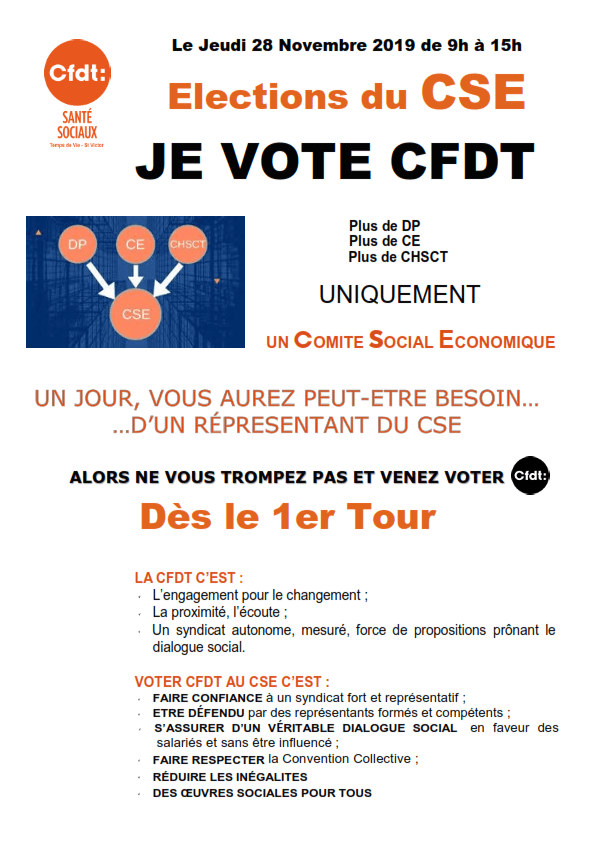 Temps de Vie St Victor : Elections CSE Jeudi 28 novembre 2019