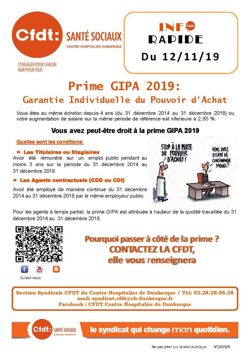 CHD : PRIME GIPA 2019 – Garantie Individuelle du Pouvoir d’Achat