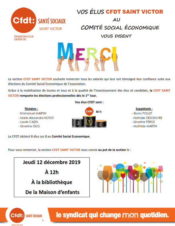 Cet article, publié dans Maison Saint Victor Temps de Vie, est tagué elections professionnelle. Ajoutez ce permalien à vos favoris.