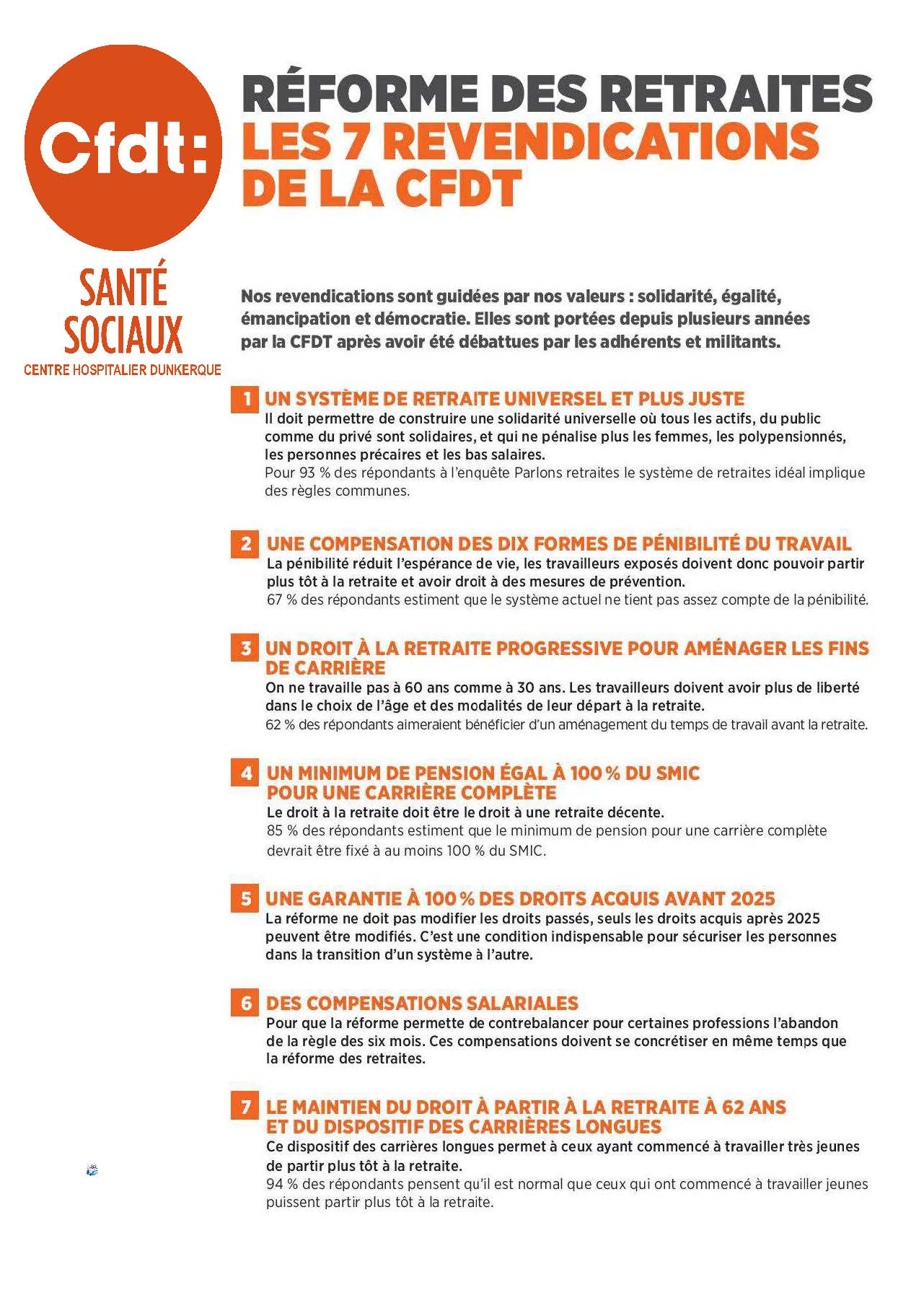 CHD : Réforme des retraites – Les 7 revendications de la CFDT !!!