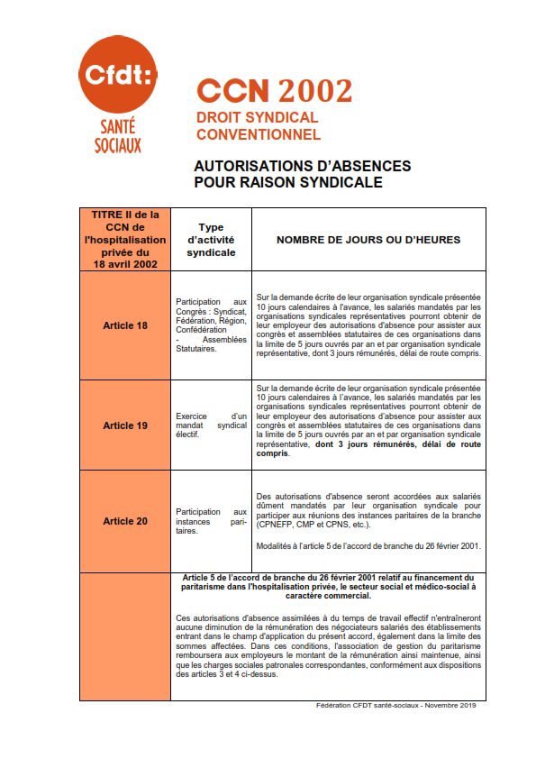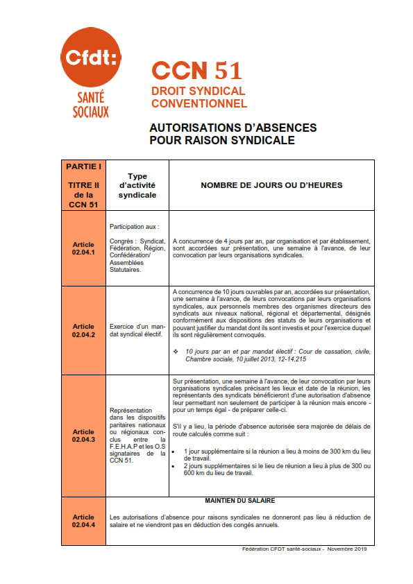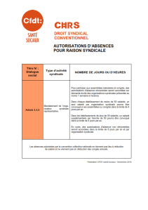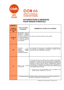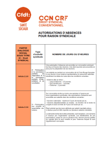 Veuillez trouver ci-dessous plusieurs fiches concernant le droit syndical conventionnel et en particulier les autorisations d’absence pour raison syndicale.
