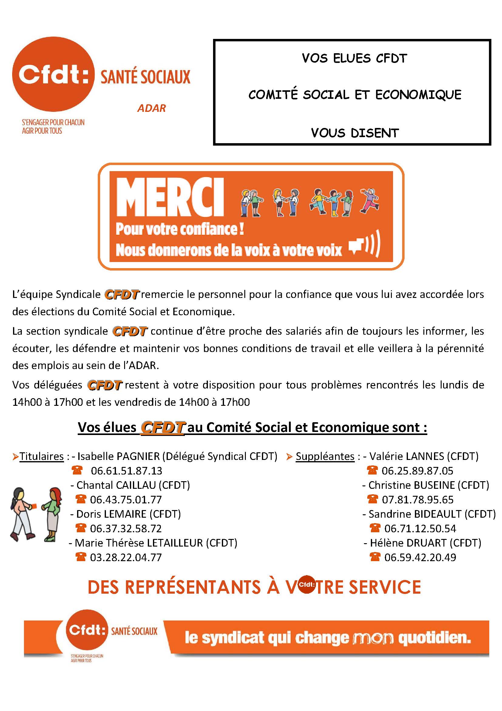 La section CFDT de L’ADAR Flandre Maritime souhaite remercier tout les salariés qui leur ont témoigné leur confiance suite aux élections du Comité Social et Economique .