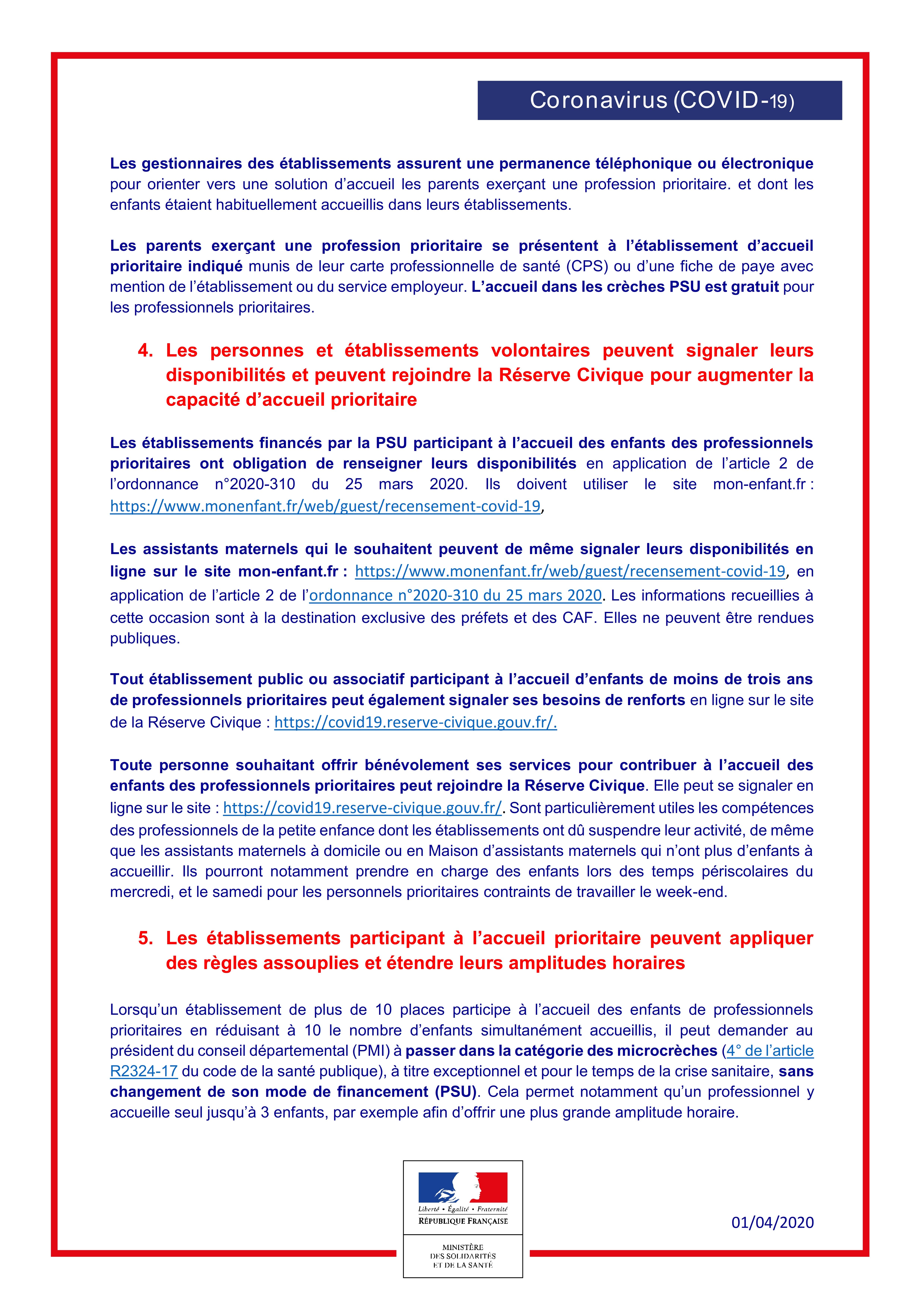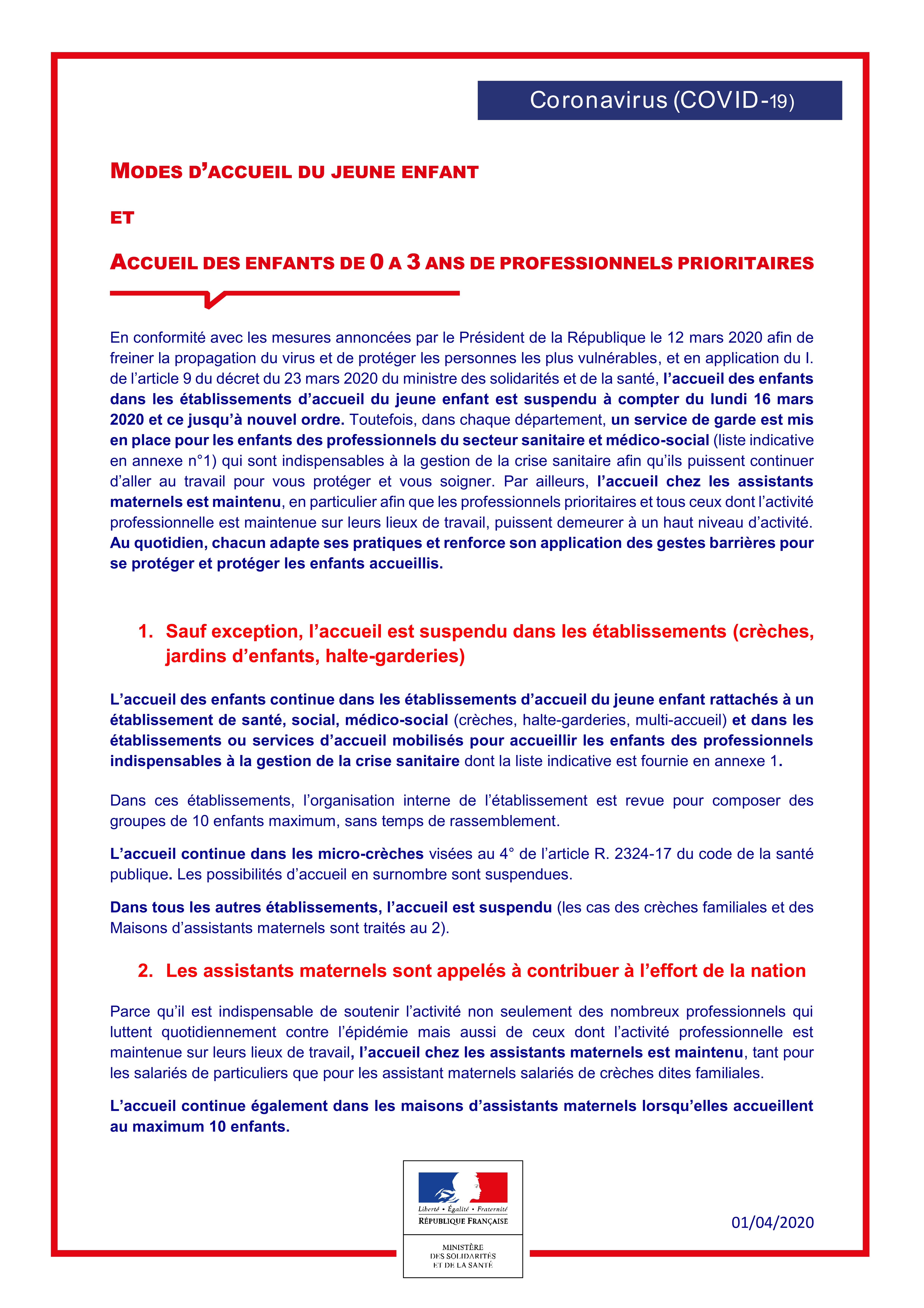 Vous trouverez, ci-dessous, les consignes relatives aux établissements d’accueil de jeunes enfants restés ouverts aux professionnels du sanitaire, social et médico-social.