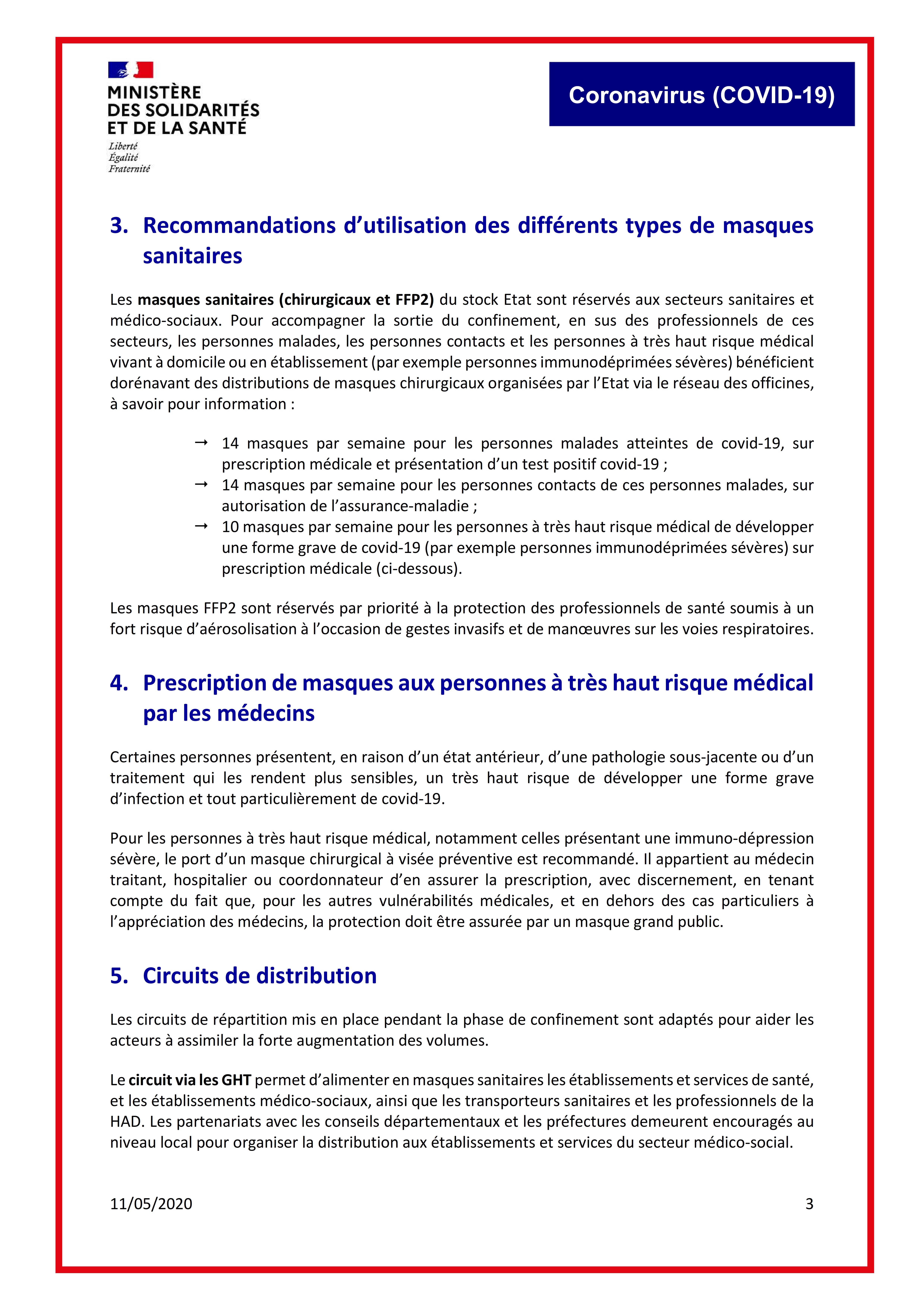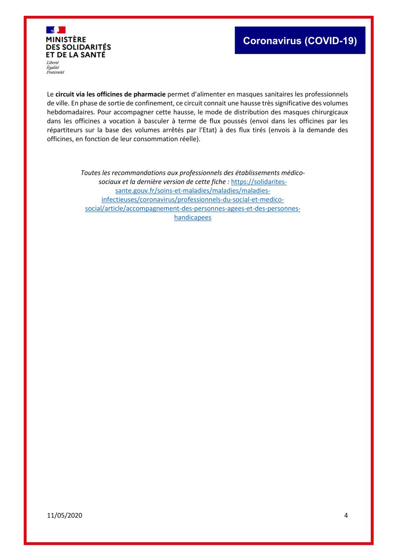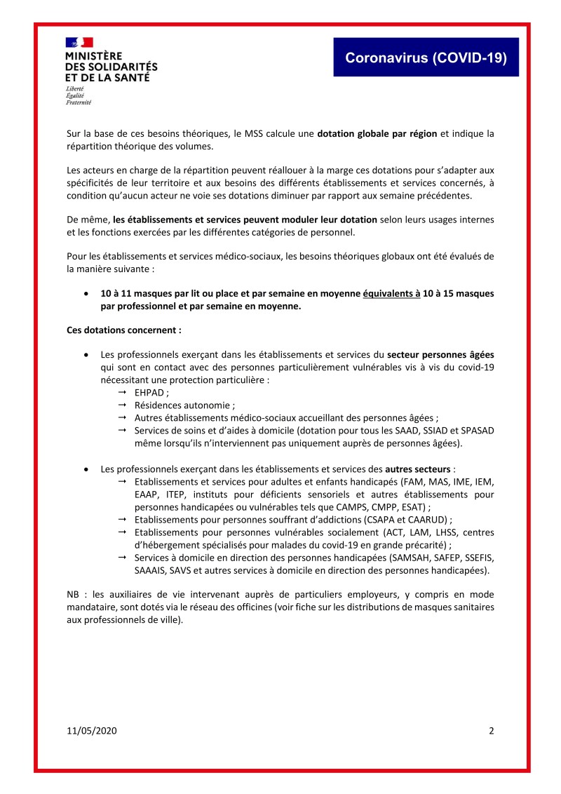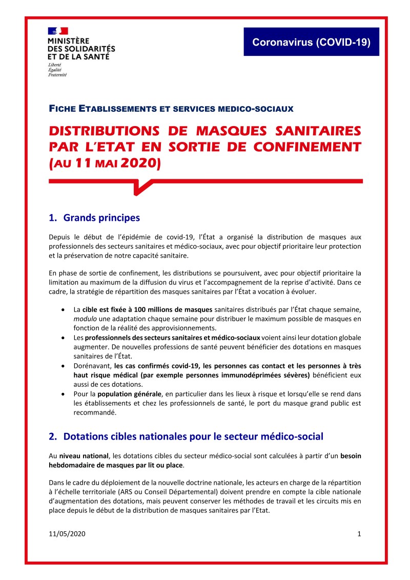 Coronavirus/Déconfinement: Distribution de masques pour les établissements médico-sociaux